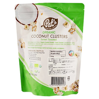 有機ココナッツチップとかぼちゃの種とひまわりの種、チアシードを固めたザクザク食感が楽しいお菓子です。