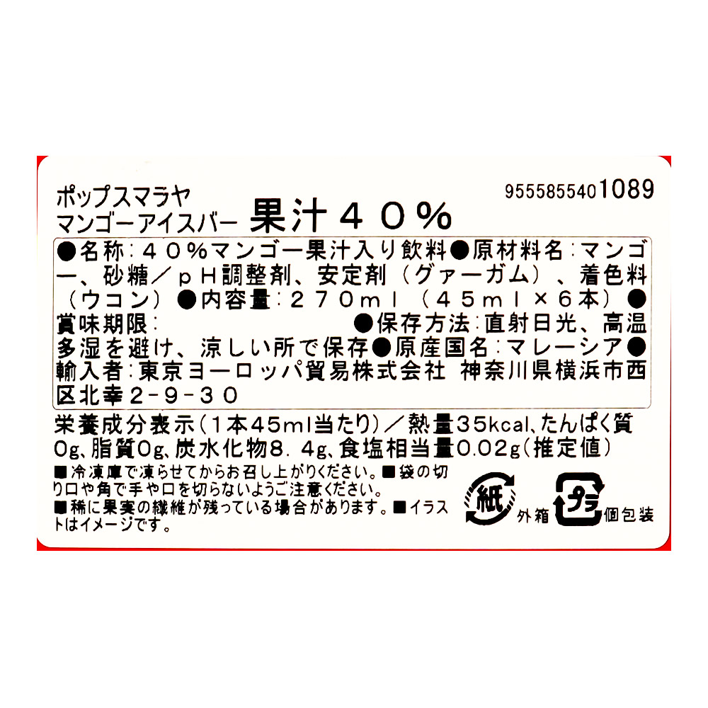 - > ポップスマラヤ アイスバーマンゴー 6P