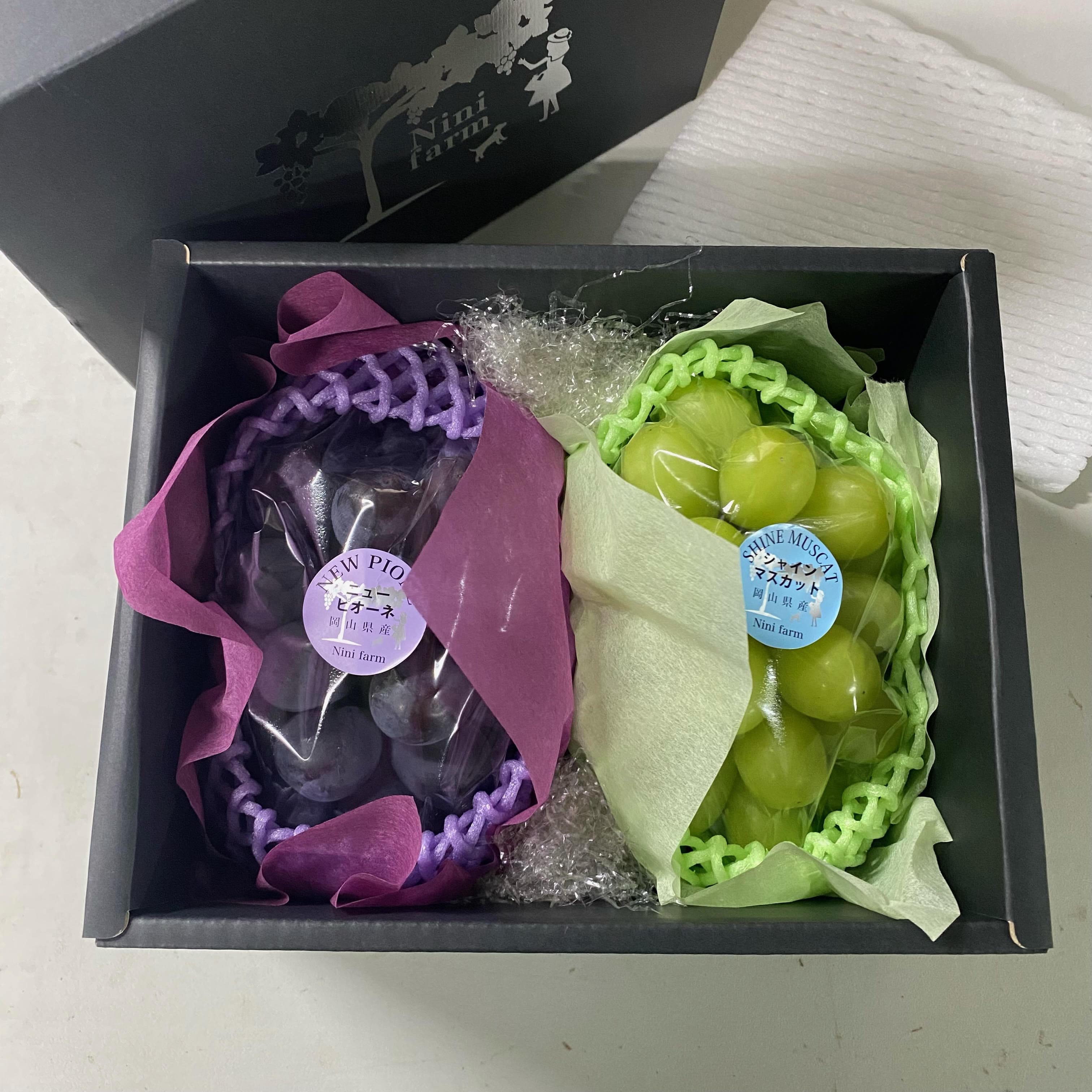 - 秀品ランク ニューピオーネ1房、シャインマスカット1房 各500g~600g 合計1.0kg以上
