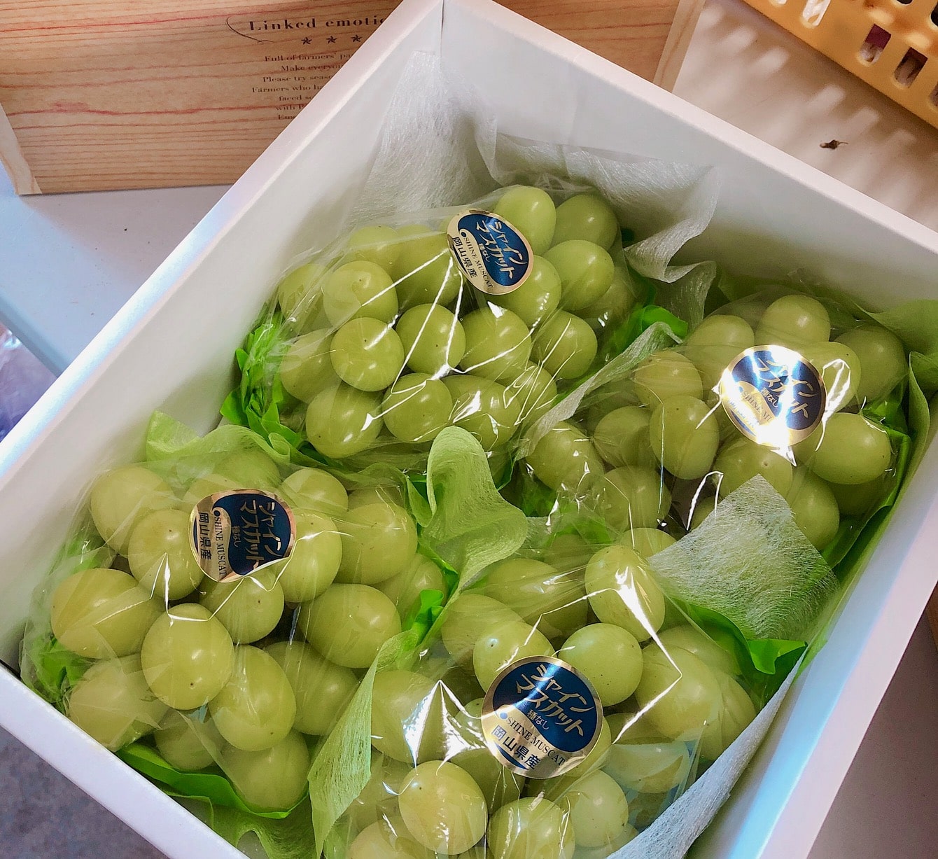 Nini farmで栽培した葡萄の中でも進物ランク(優品)のシャインマスカットを詰めております。