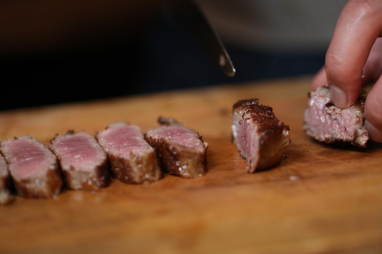 網目のように細かく入り込んだ霜降りが美しく、風味豊かです。脂肪の質が良いため、焼いた時に香ばしい香りが広がります。