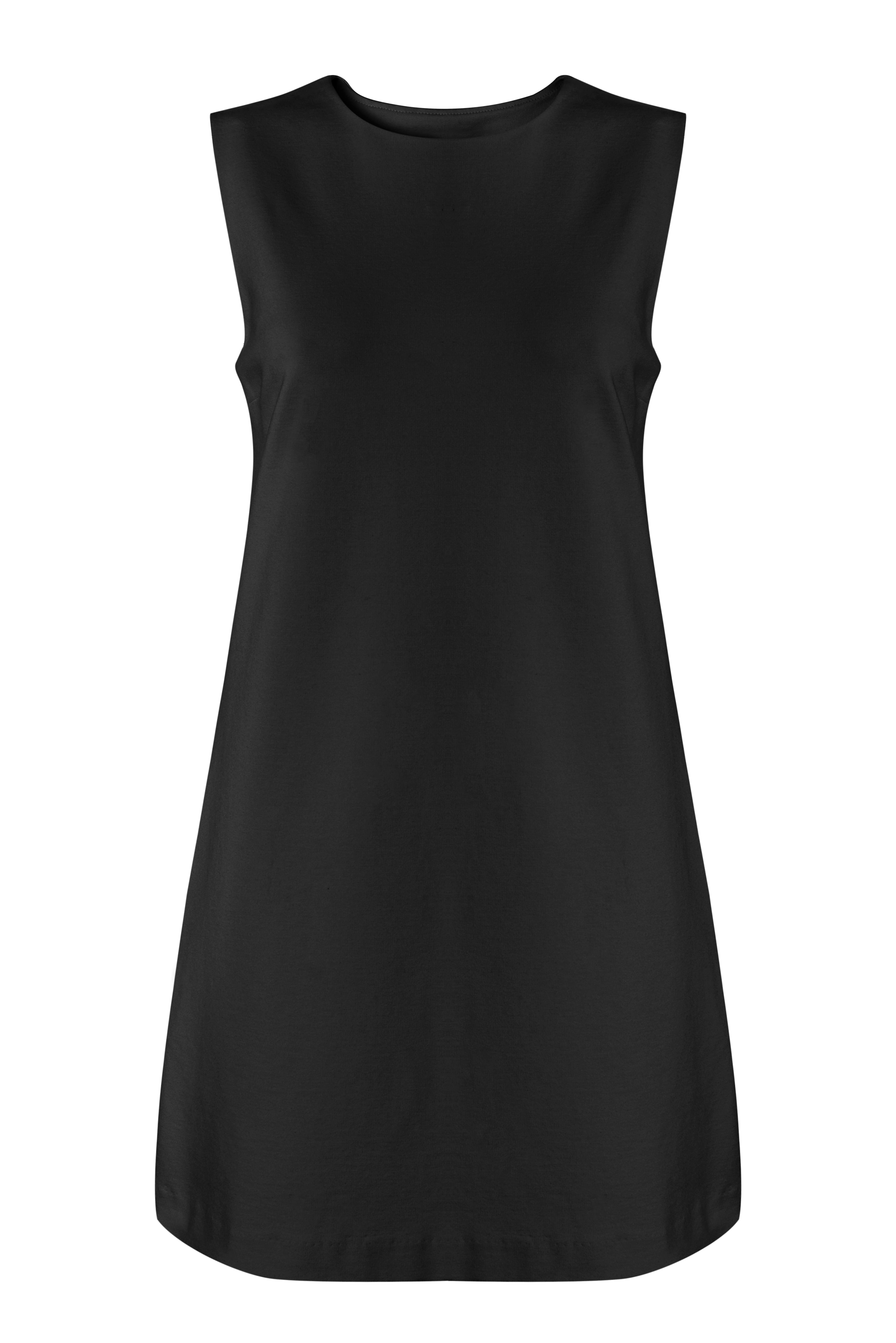 しっかりとした生地感にストレッチが加わった美しいシルエットのチュニックワンピース(かぶりタイプ・ポケット付き)