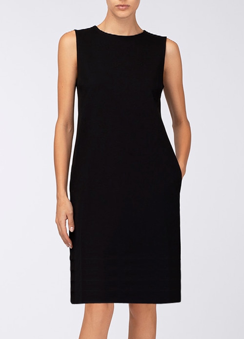 しっかりとした生地感にストレッチが加わった美しいシルエットのチュニックワンピース(かぶりタイプ・ポケット付き)