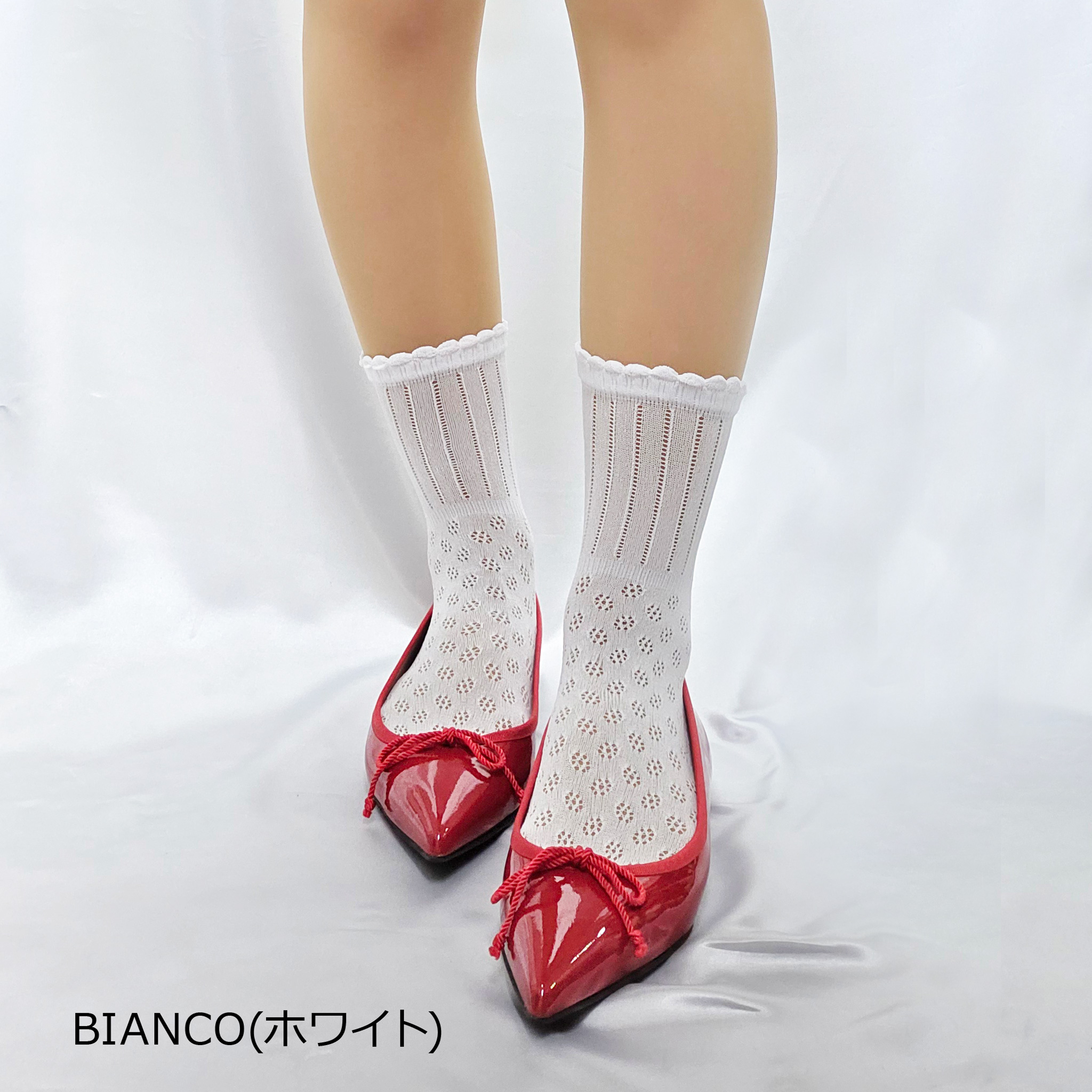【アネット】クローシェ風ニットソックス ソフトで柔らかな肌触りのよい編みのノンストレスソックス