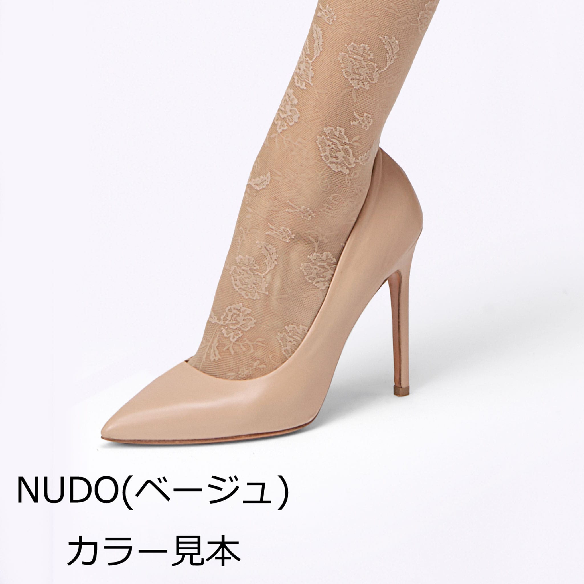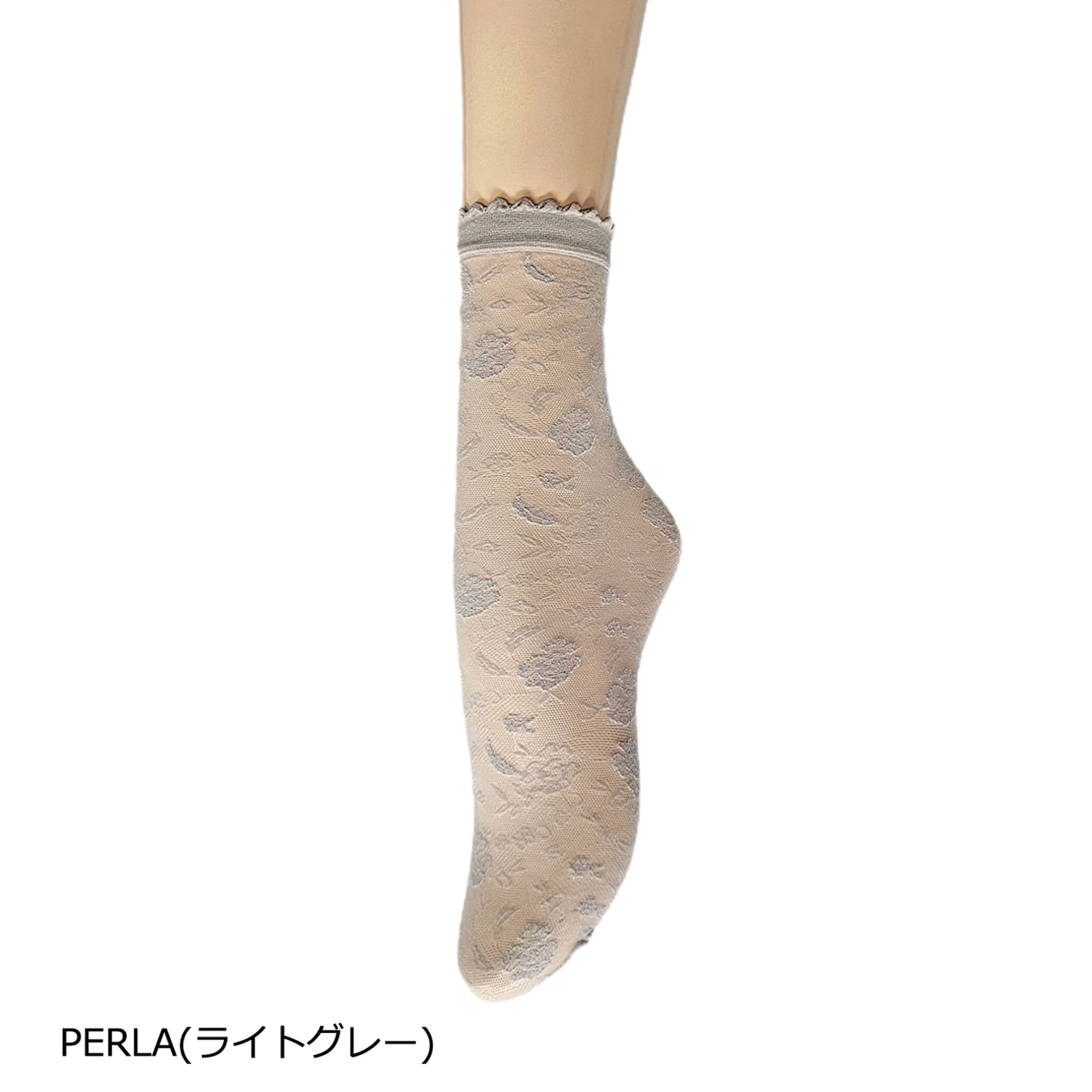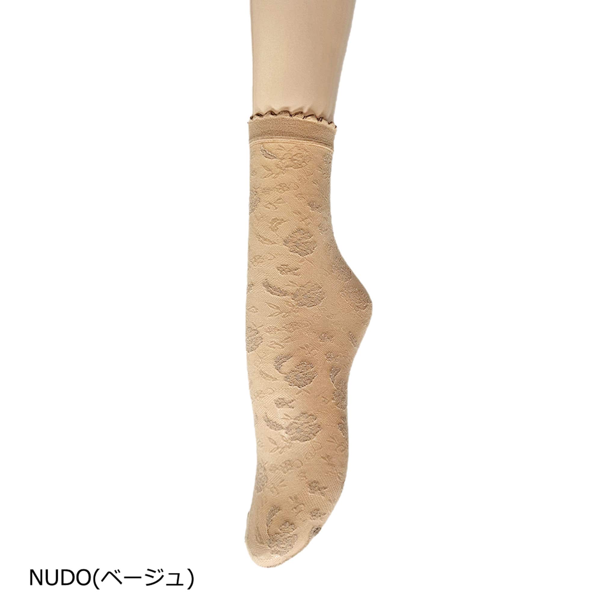 透明感のあるジャガードレースは、ロマンティックな花を大胆にデコレーションした春らしいソックス丈のストッキング