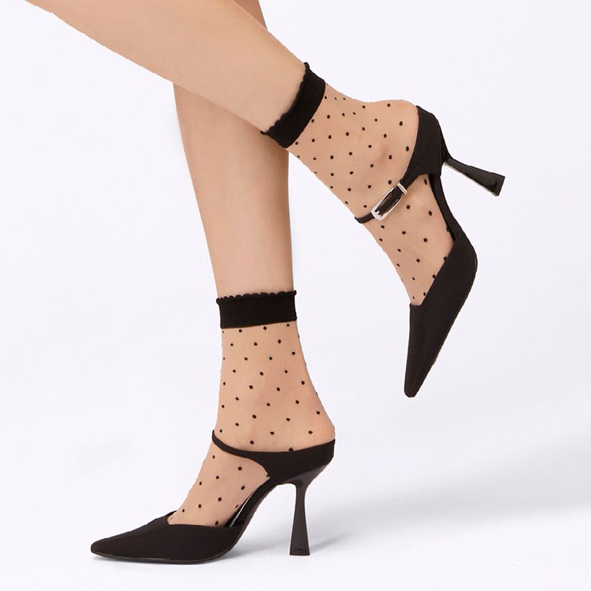上質な履き心地を求める方に…イタリア製ピエールマントゥーレッグウエア ラグジュアリーなドットモチーフショートソックス丈ストッキング 王道のブラック×ブラック