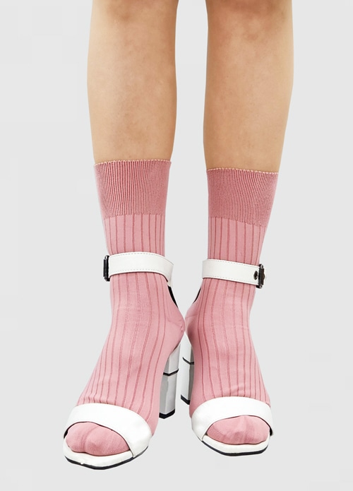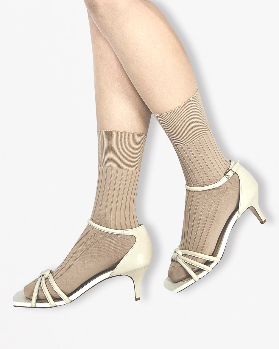 しなやかな肌触りにシンプルなリブを施したソックス 口ゴム部分は幅広にとりリブをさらに細かくデザイン