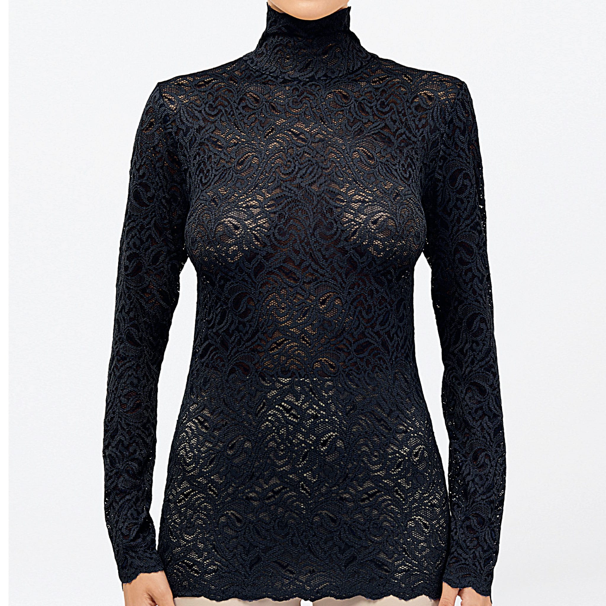 エレガントなオプラレースのハイネック長袖プルオーバー