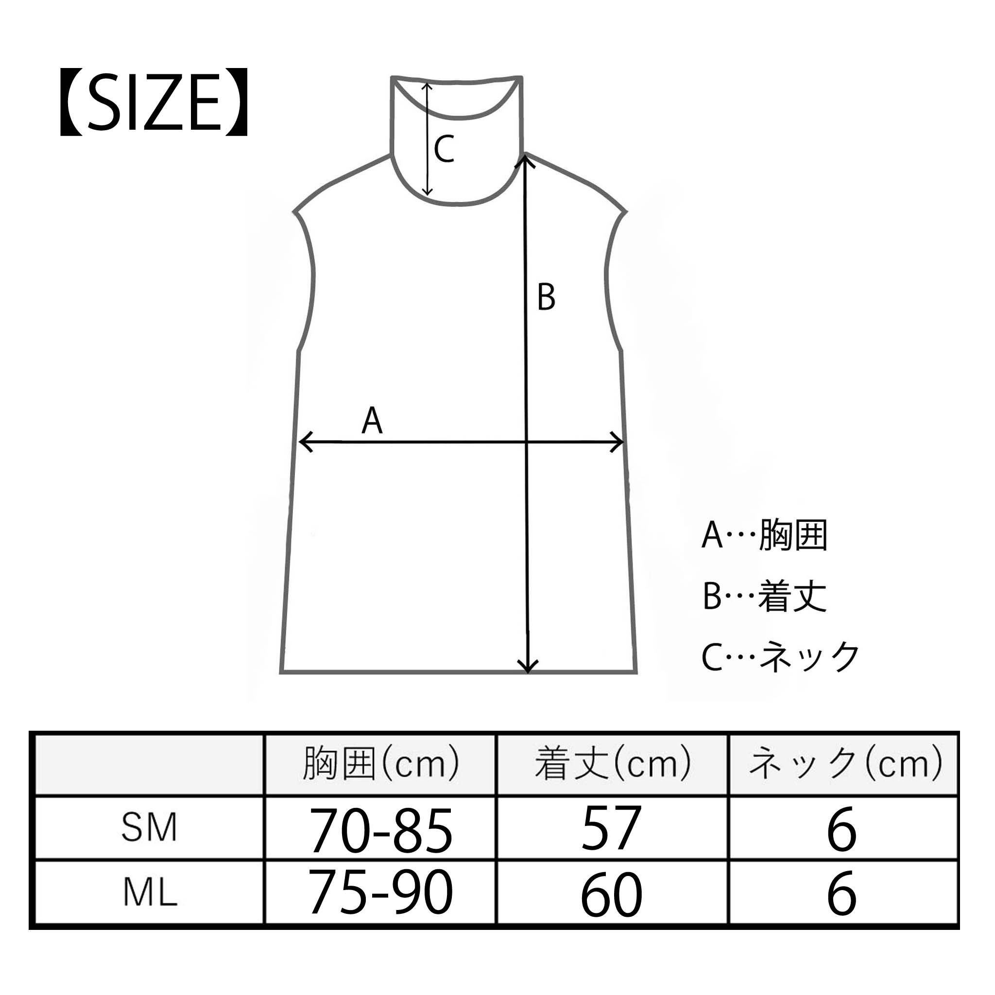 ※伸縮性のある生地のためサイズチャートは目安としてご利用ください