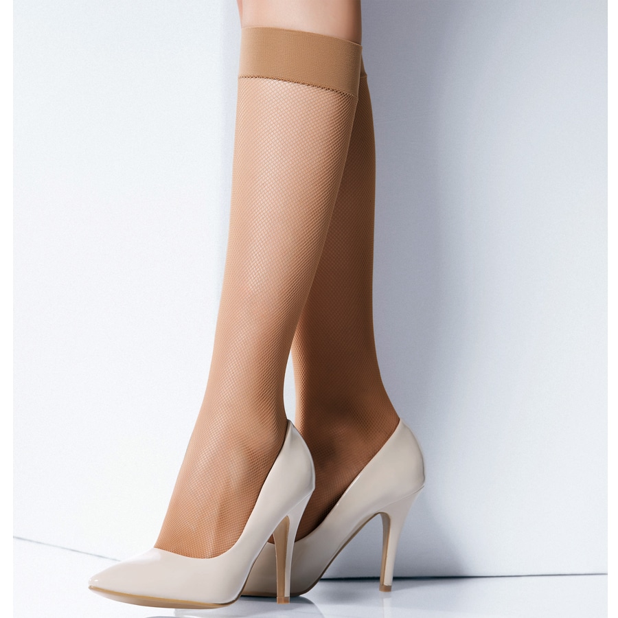 美しい陰影と抜群のフィット感と履き心地で人気の超極細フィッシュネットハイソックス