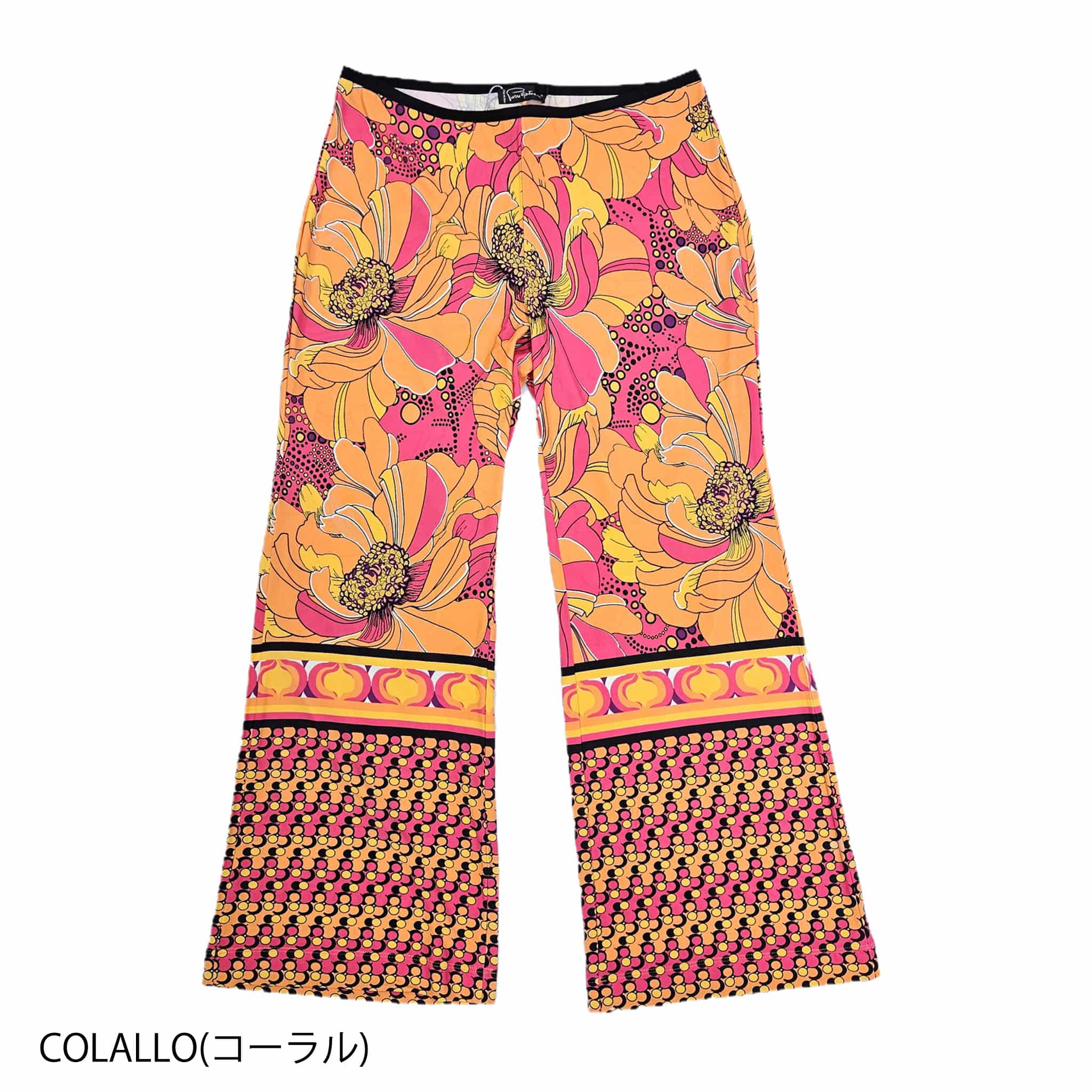 イタリア製ピエールマントゥーから 海と太陽をイメージしたカラーリングのフラワープリントクロップドパンツ 明るく華やかなコーラル