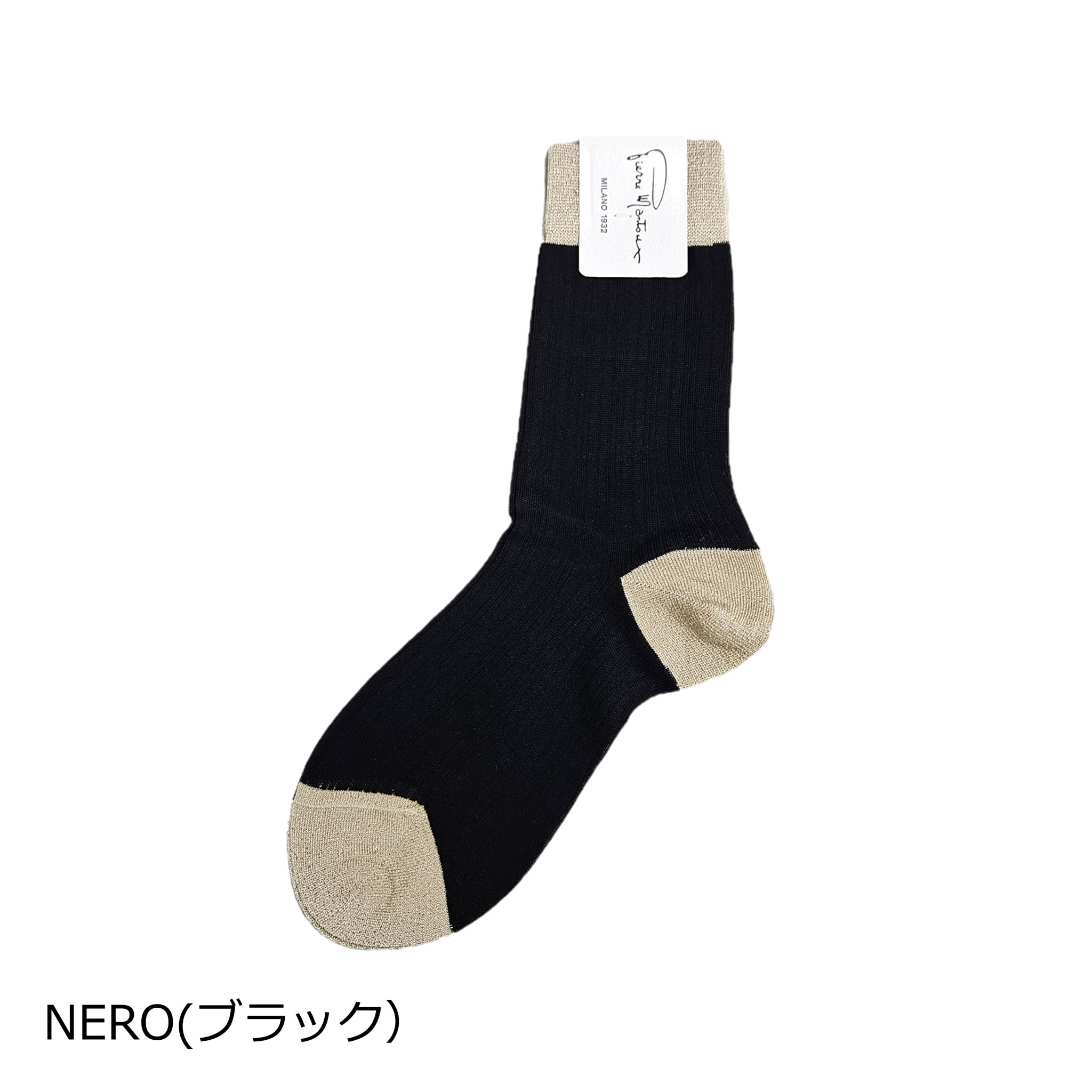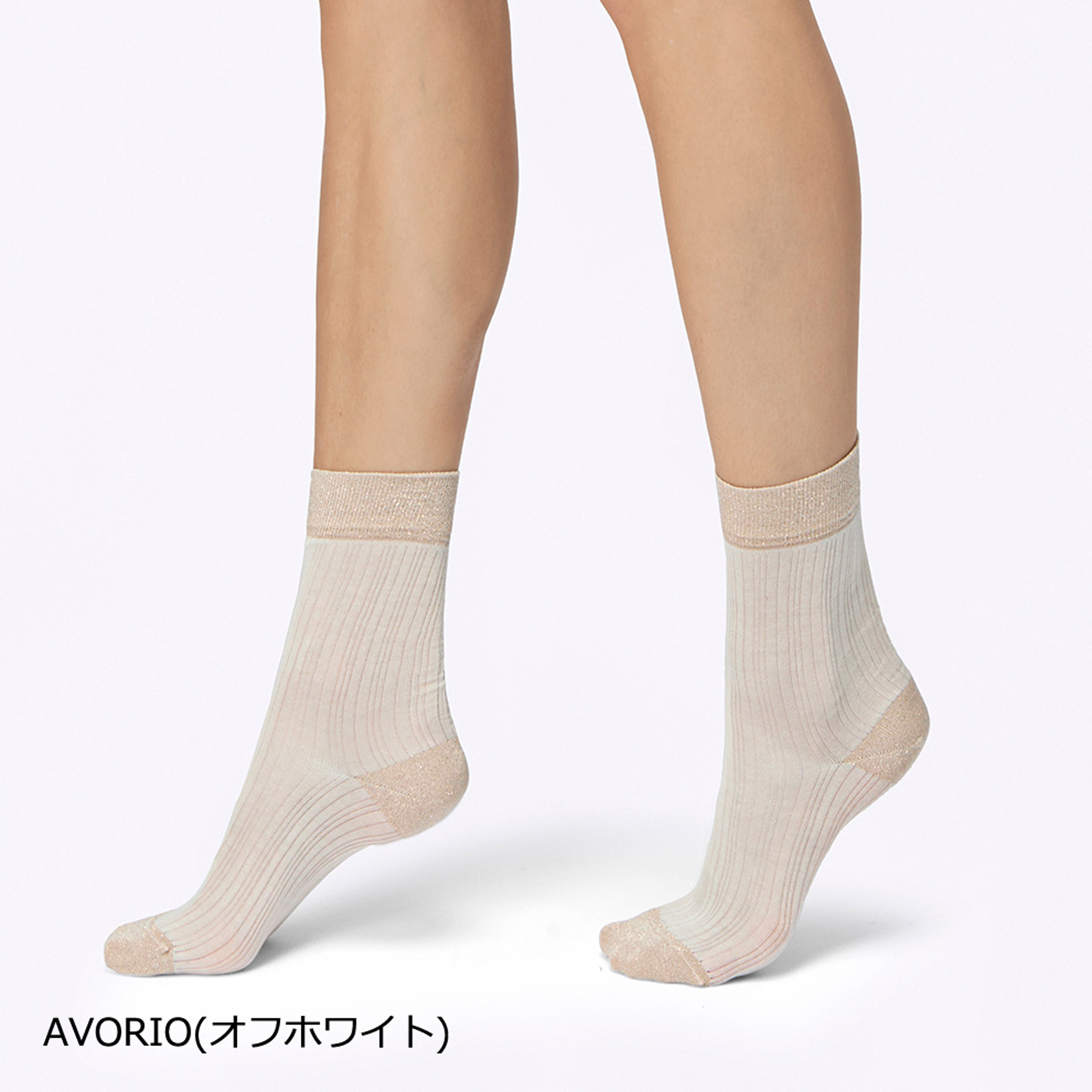 リブソックスはディテールにもこだわり、幅広口ゴム、かかと、つま先にラメを施し華やかさをプラス