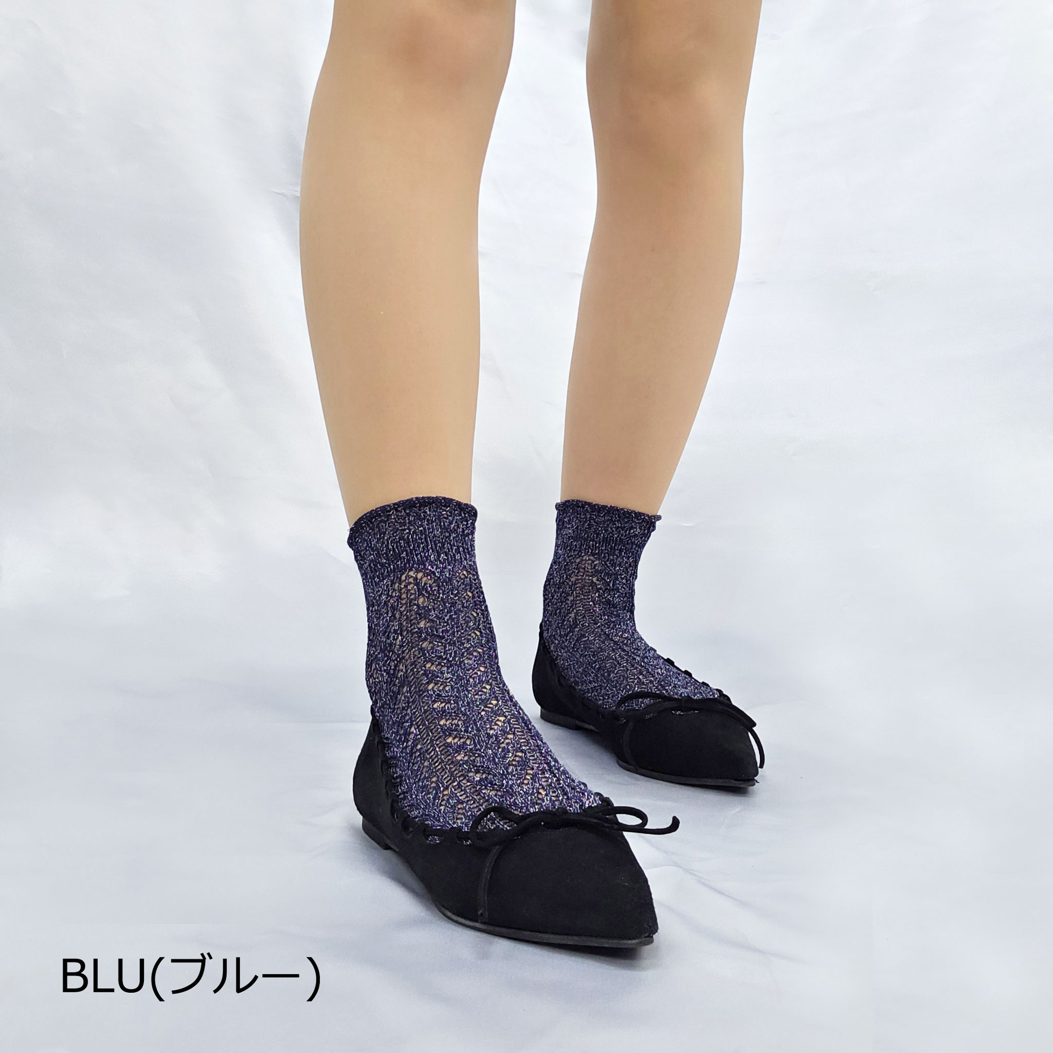 【トレド】ヘリンボーン柄のコットン・ラメニットソックス