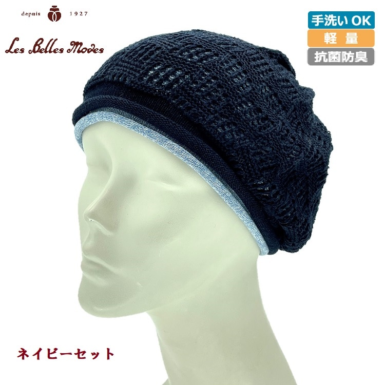 軽やか抗菌おうち兼用2枚組ベレーワッチ〔ネイビーセット〕