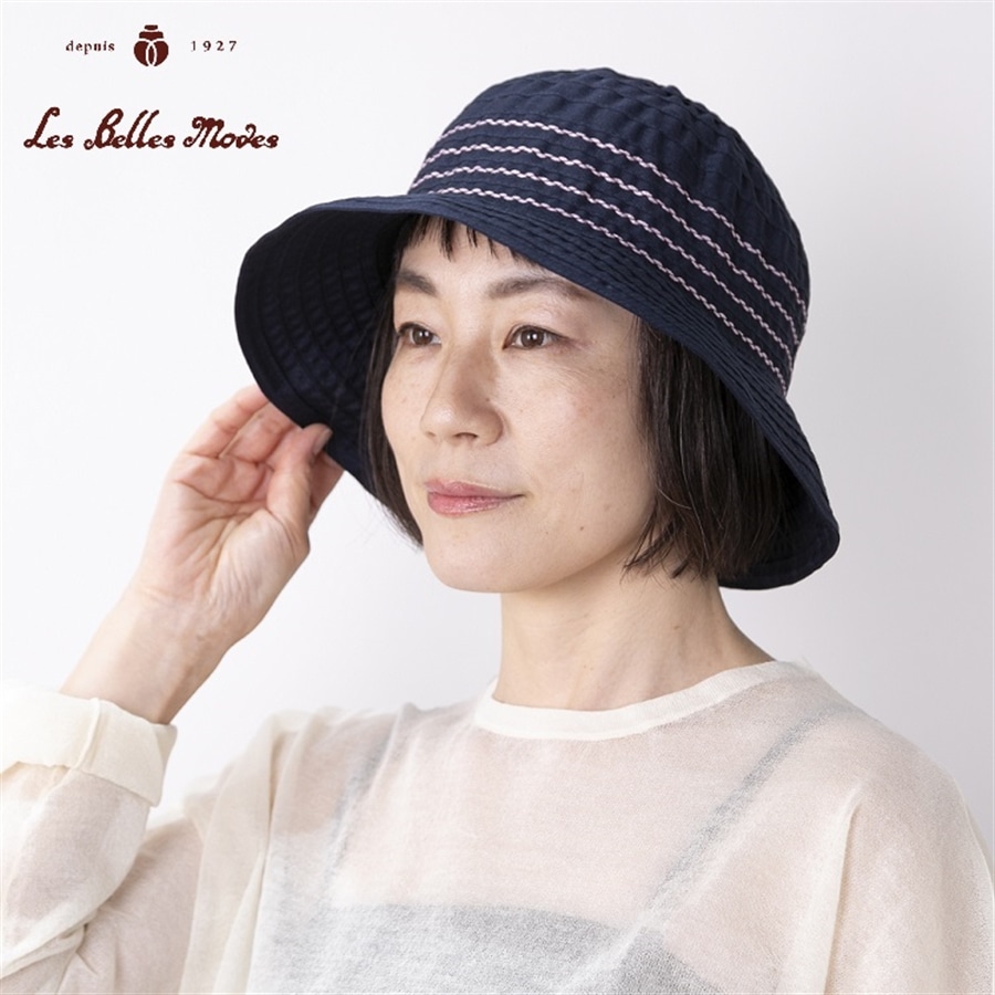 ●つば先はワイヤー入りなので、上げ下げやエッジを波打たせるなどのアレンジが自在です。後ろつばは短めで、コートやブラウスの襟に当たりにくい仕様です。