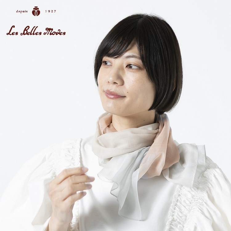 ●装いに合わせやすいエレガントな配色。セレモニースタイルに合わせると華やかに映えます。巻き方によって表情が生まれ、重なり合う色の変化を楽しめます。