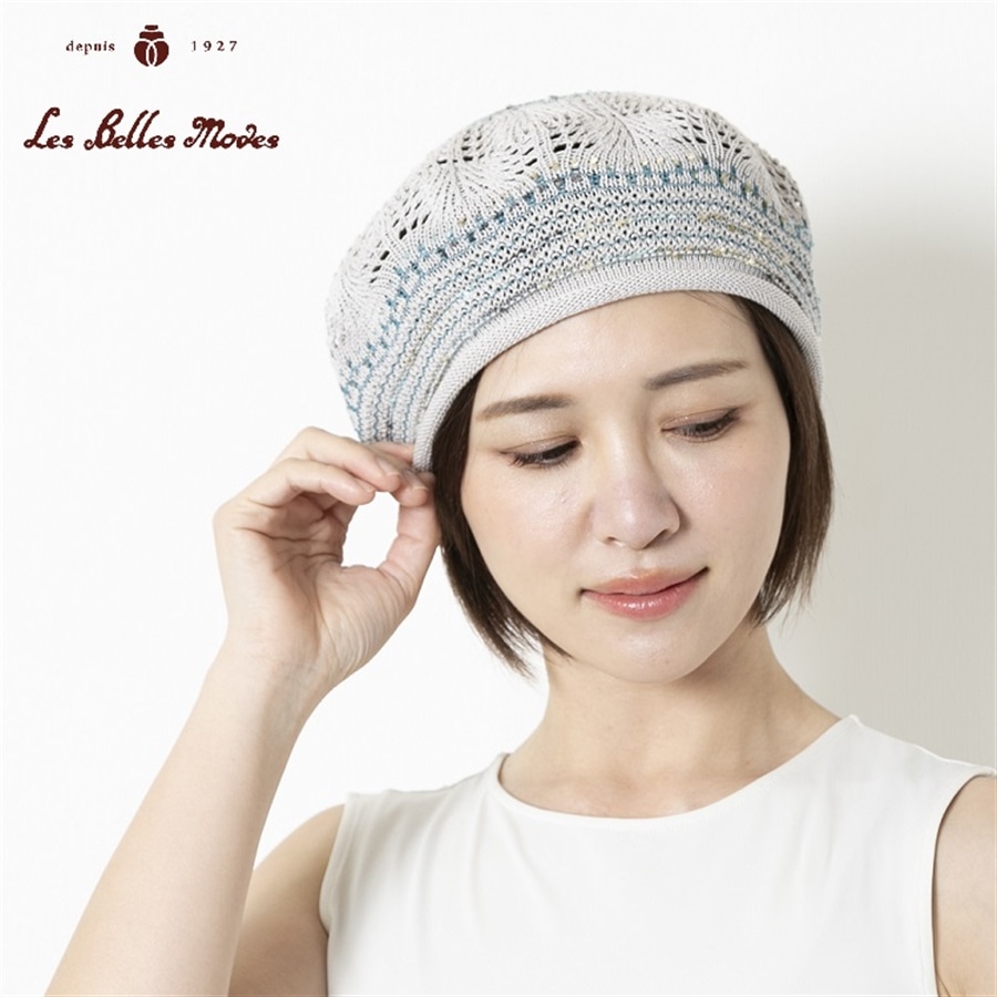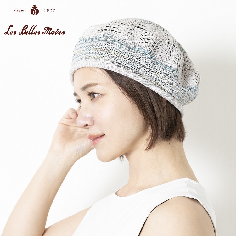 ●シャリ感が爽やかな擬麻コットンをベースにしたベレー帽。繊細なレース編みが涼やかさを増してくれます。