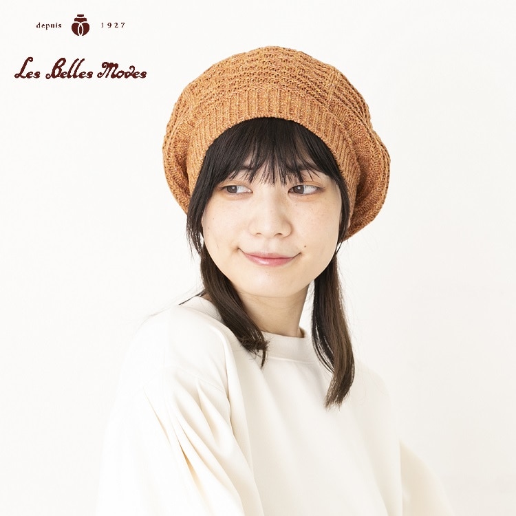 ●被り口のリブ部分は、折り返しやすい仕様。中に折って被ると、よりベレー感が増したシルエットになります。2WAYでお楽しみいただけます。
