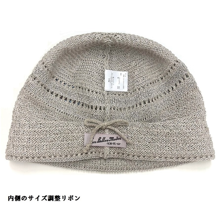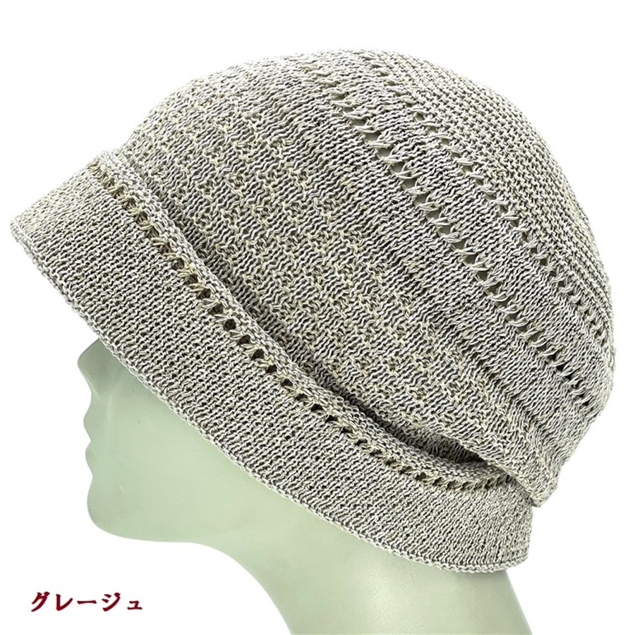 - > シルク混ニット帽子〔グレージュ〕