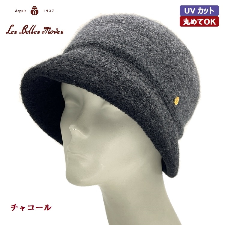 - > ふんわり縮絨クローシュ〔チャコール〕