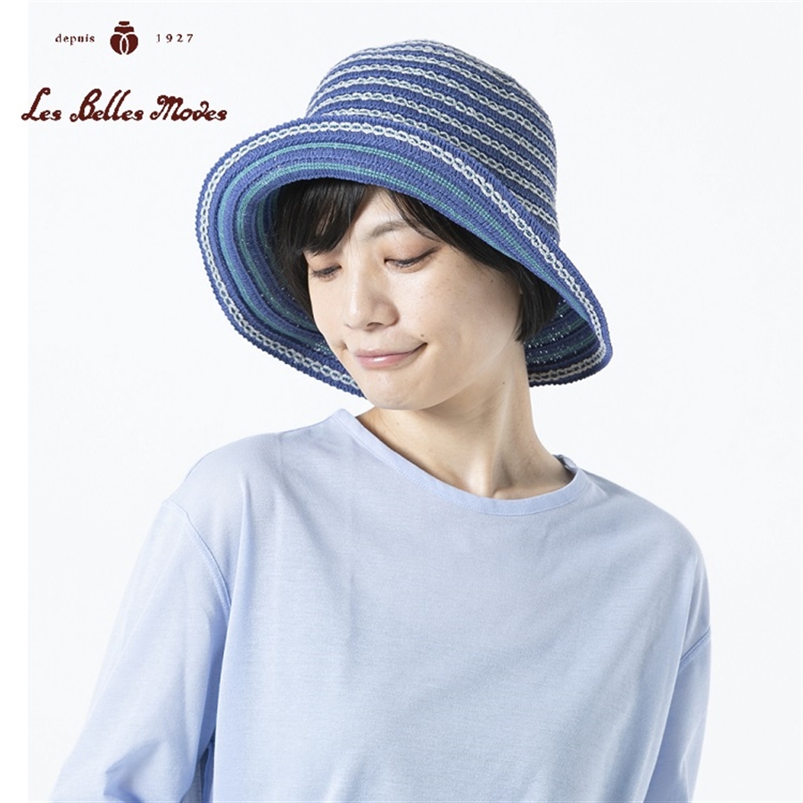 ●さらりとして蒸れにくく、柔らかな被り心地のクローシュ。ベルモードオリジナルの和紙混ブレードを使用、リバーシブルで表情が変わるボーダーライクの模様が軽やかです。