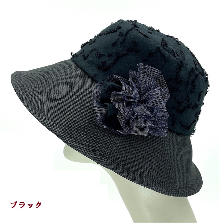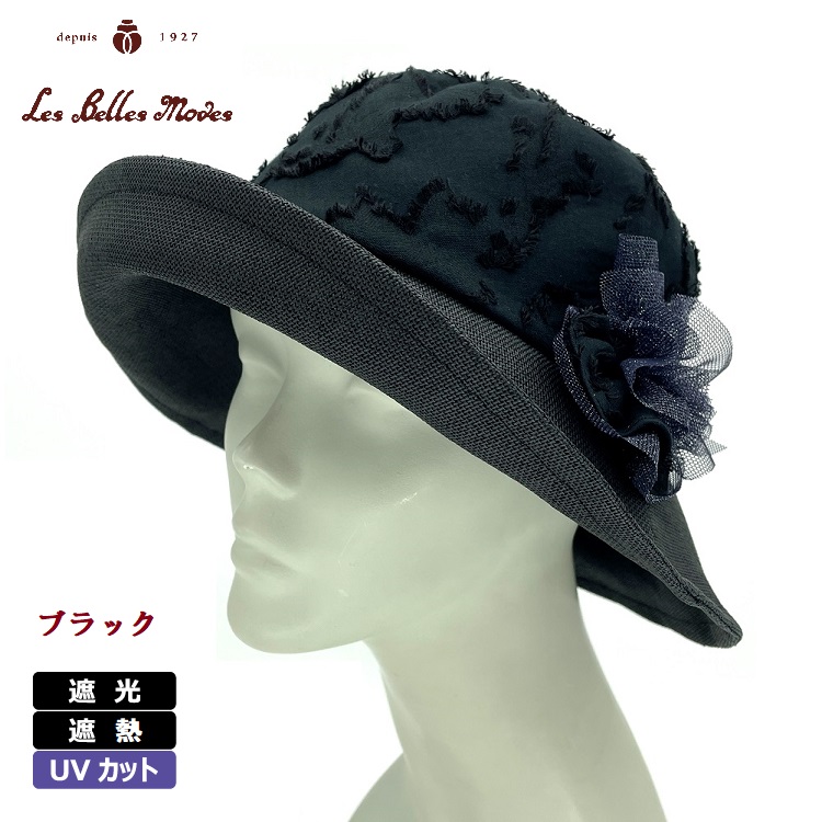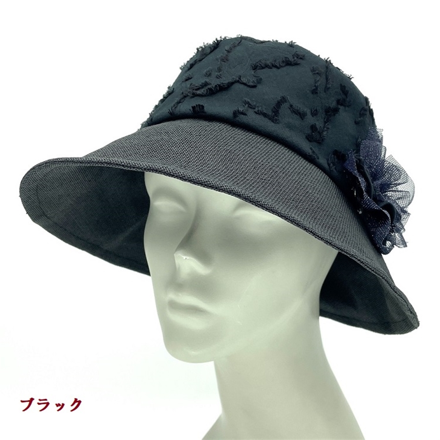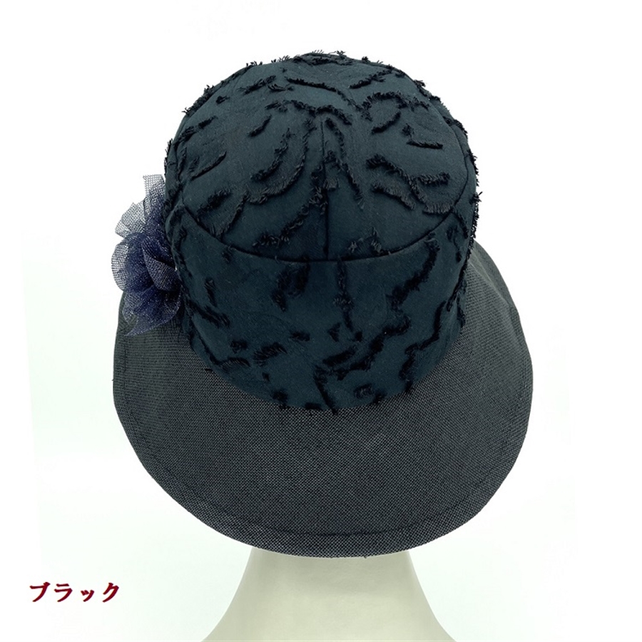 つば遮光のペーパークロス×カットジャカードクローシュ〔ブラック〕