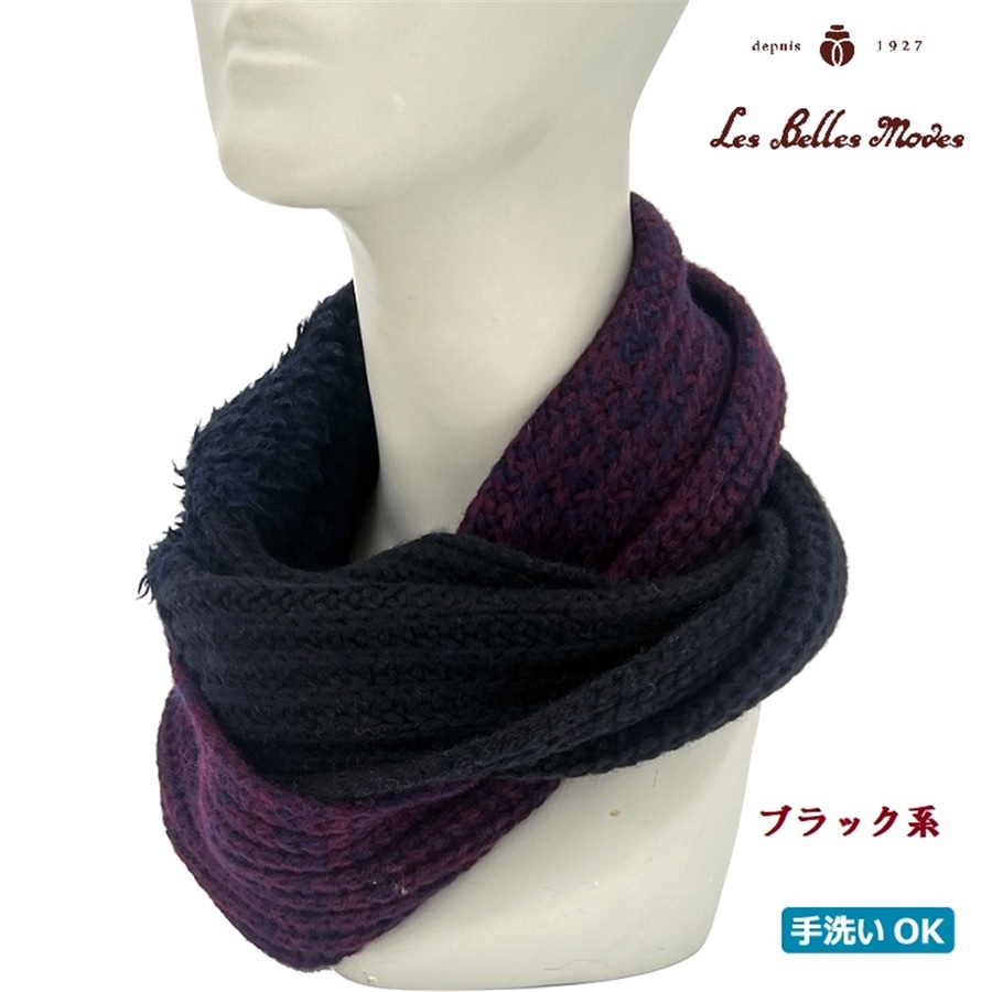 ●全体を畦編みにすることで凹凸感のあるストライプ風に見せたデザイン。一部に取り入れたファーがアクセントとなり、巻き方によって雰囲気を変えてお楽しみいただけます。