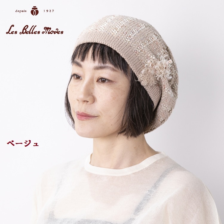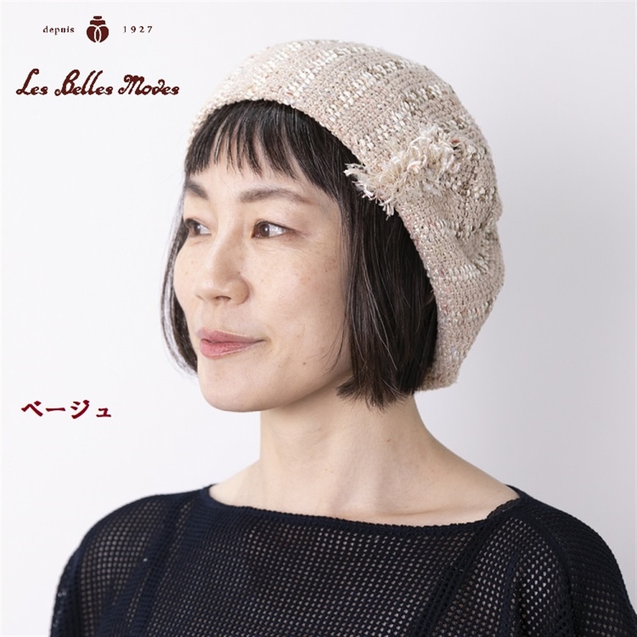 サマーミックスフリンジニットベレー〔ベージュ〕
