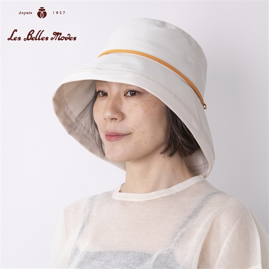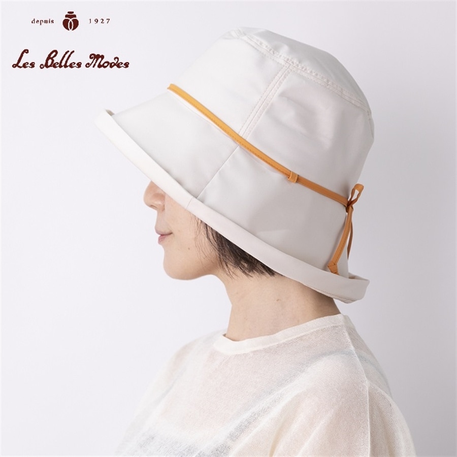●シンプルなフォルムに、細いベルトのアクセントカラーが映えるデザイン。つば端のステッチもベルトと同系色です。