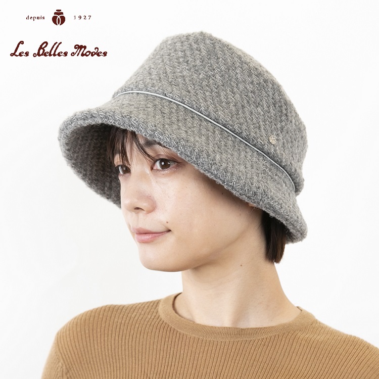 ●小ぶりなつば幅で、さっと被れるバケットタイプのクローシュです。起毛感のあるウール混ツィードが頭部を暖かく包みます。