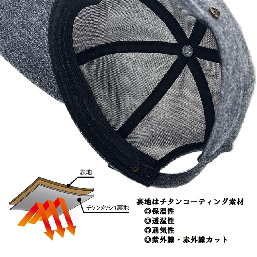●頭部の裏側に、チタン素材を接着させるボンディング加工を施しています。体温を反射する事で頭部を暖かく保ちます。