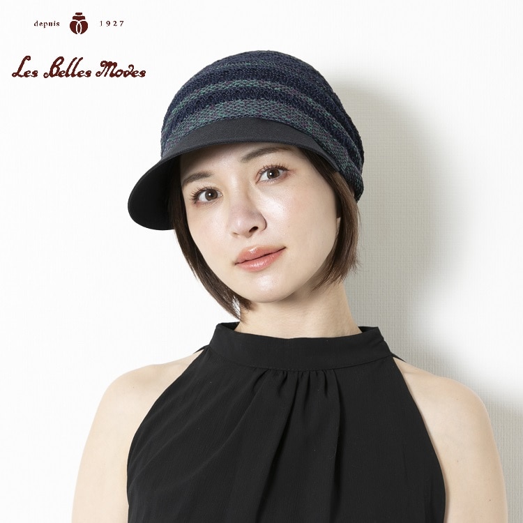 ●異素材コンビのニットキャスケット。つばを布帛にして、エレガントに仕上げました。