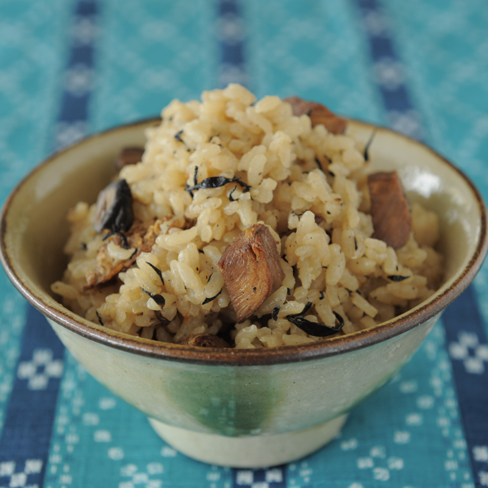 地鶏と野菜が入った、沖縄風炊込みご飯の素です。