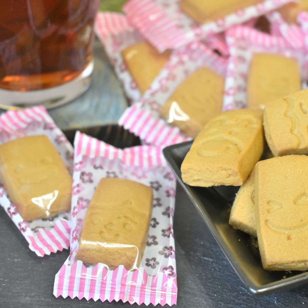 にっこり笑顔の女の子が描かれたパッケージが可愛い!思わず笑顔になるお菓子です。