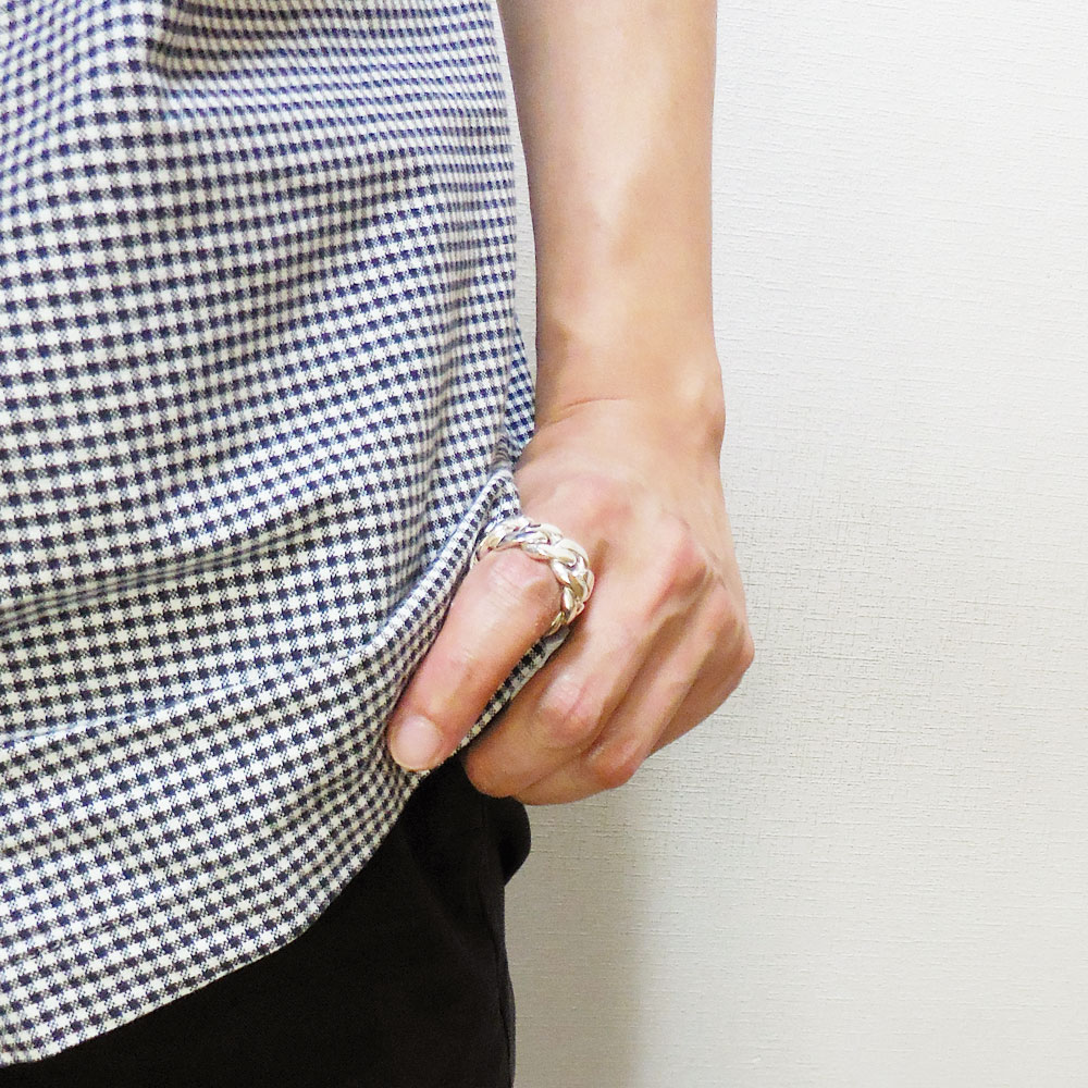 イタリア製、幅約1.2cmでボリューム感のある丸喜平チェーンタイプのリングです。