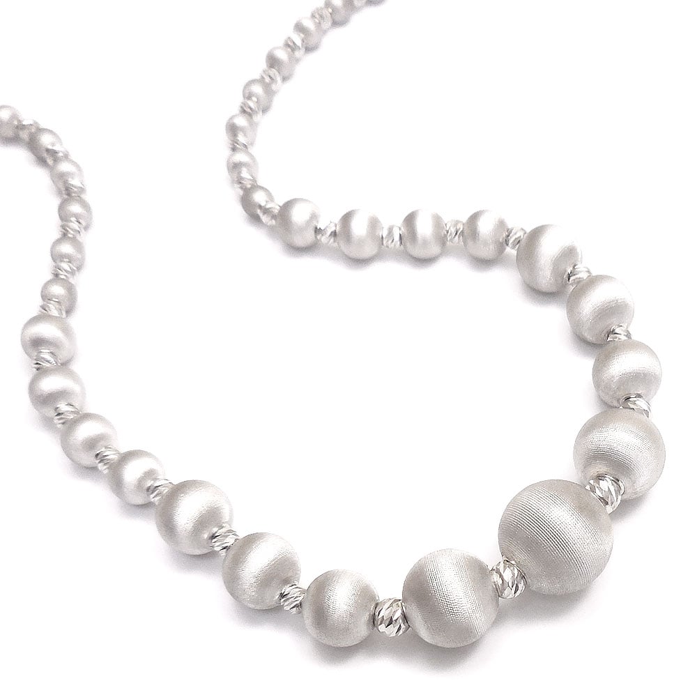 イタリア製、落ち着いた風合いのサテン調ボールを使ったネックレス。