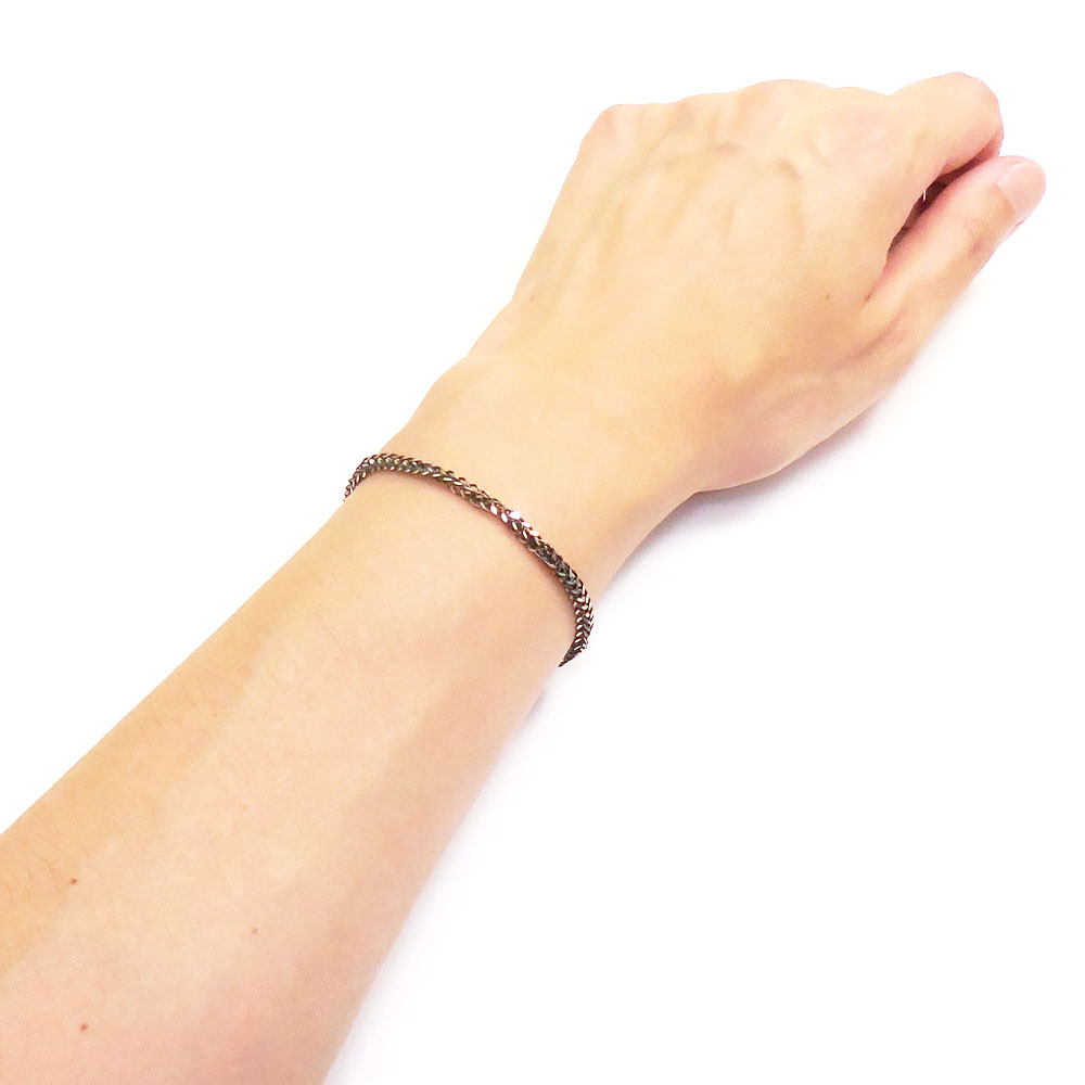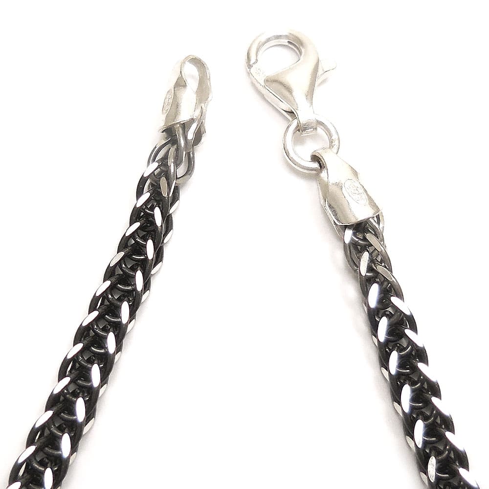 ブラックルテニウムメッキの黒さとカット面の輝きがかっこいい、イタリア製ダブルキヘイチェーンのシルバーブレスレットです。
