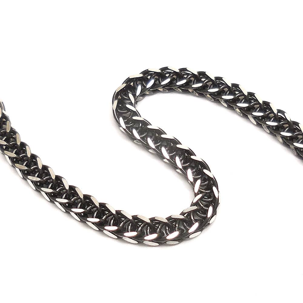 幅3mmのダブルキヘイチェーンは4面カットが施されていて、ブラックカラーの中でその面が光の反射でキラリと輝きます。
