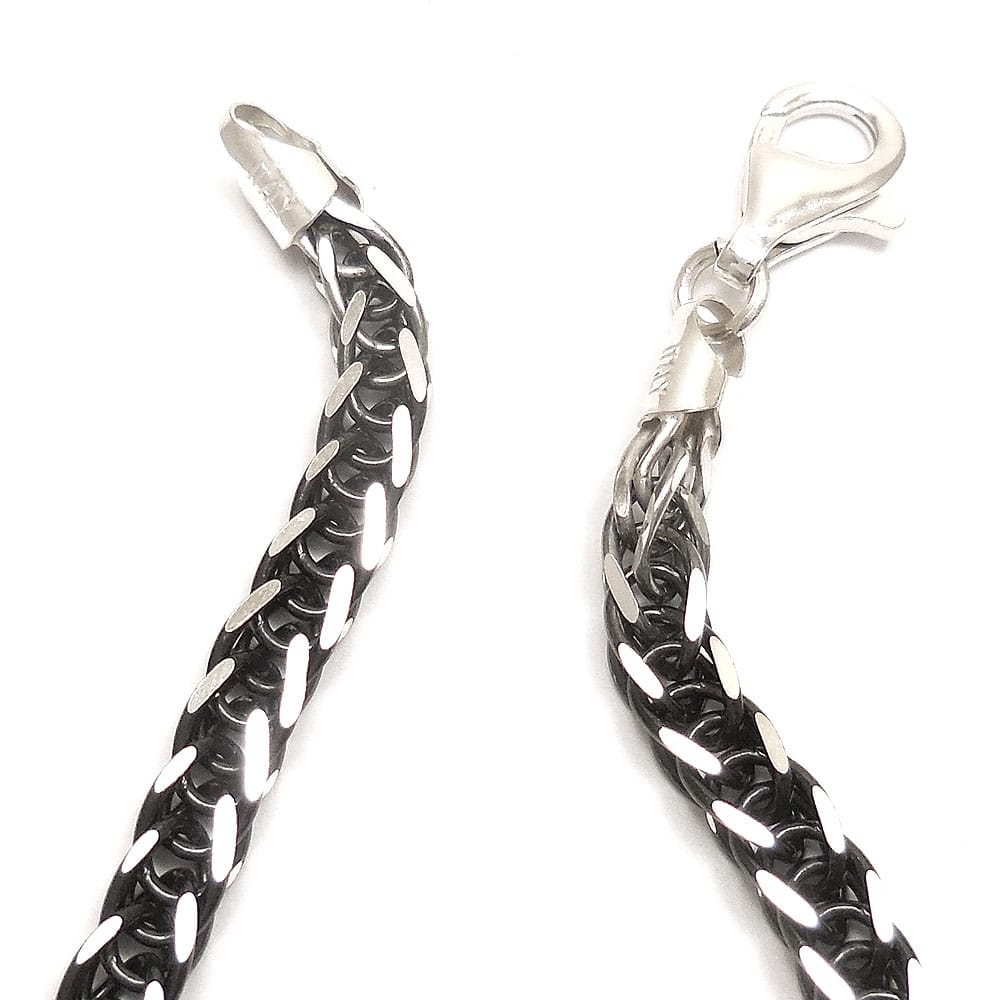 ブラックルテニウムメッキの黒さとカット面の輝きがかっこいい、イタリア製ダブルキヘイチェーンのシルバーブレスレットです。