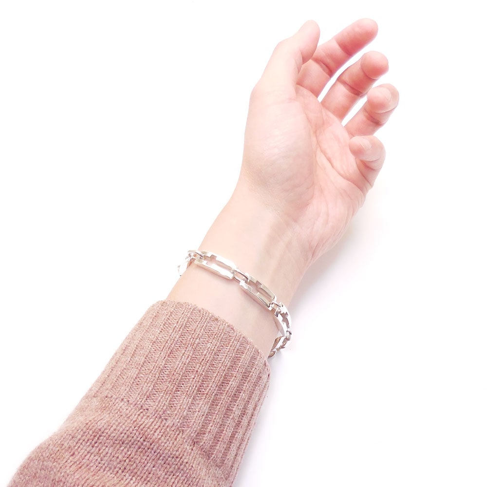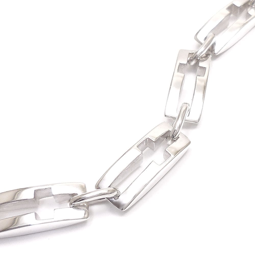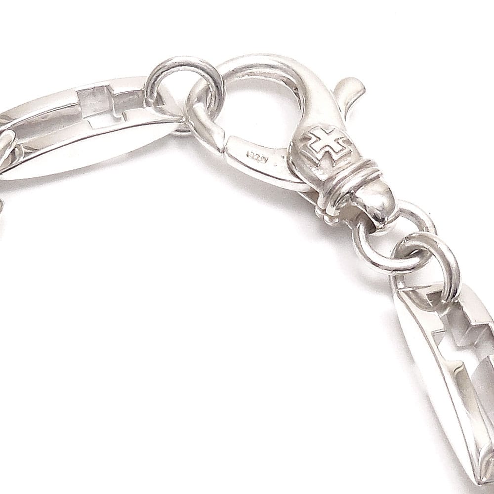 チェーンのコマ、留め具も含めてクロスがたくさんのブレスレット。