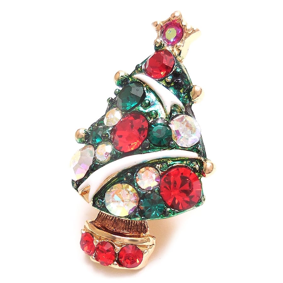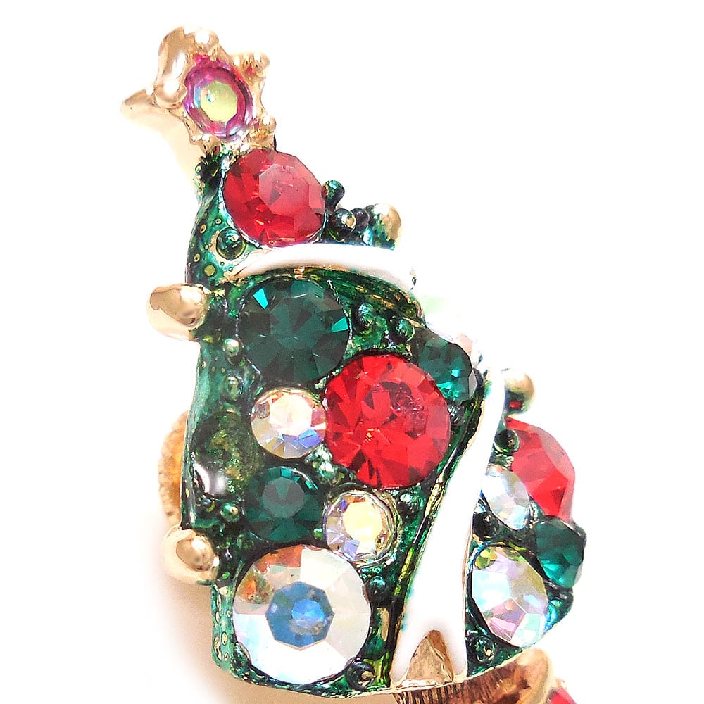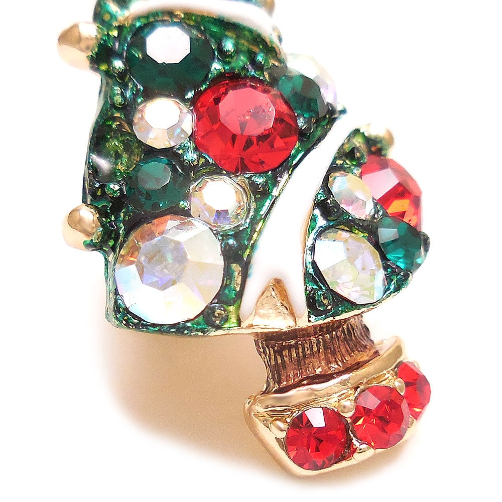 クリスタルガラスがキラキラとまばゆく光る、クリスマスツリーのピンブローチです。