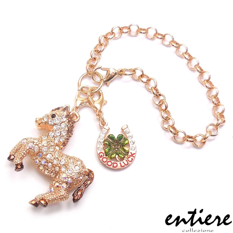 entiere アンティエーレ キラキラ バッグチャーム 馬 午 ウマ 馬蹄&クローバーミニチャーム ゴールド/クリアカラー