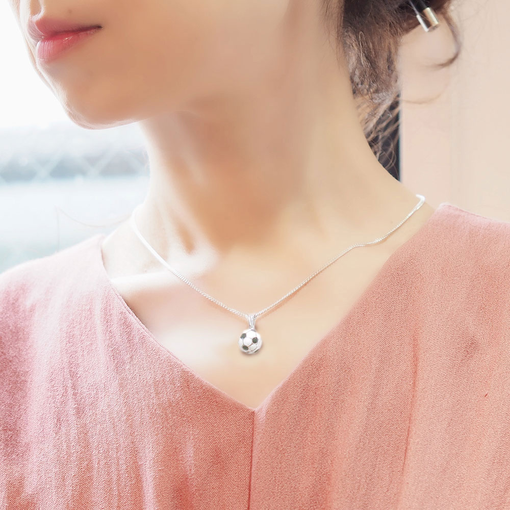 素材は、シルバー925にロジウムメッキです。※サッカーボールの底部分には、加工時に破損を防ぐための小さい穴が開いています。
