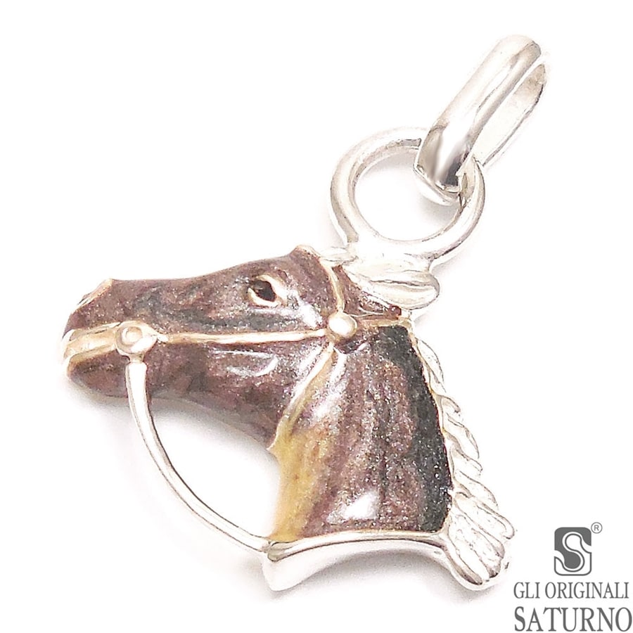 SATURNO サツルノ チャーム ペンダントトップ 馬 ダークブラウン シルバー925 エナメル彩色 メンズ レディース
