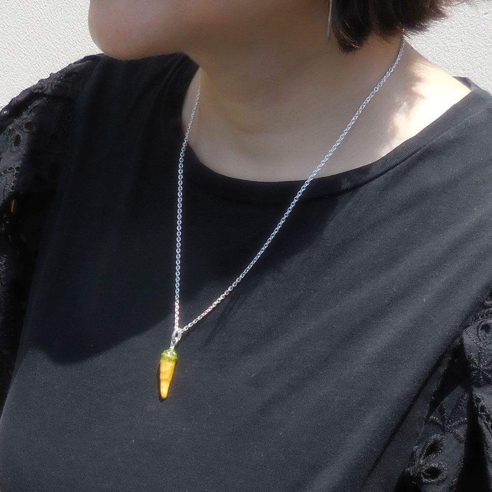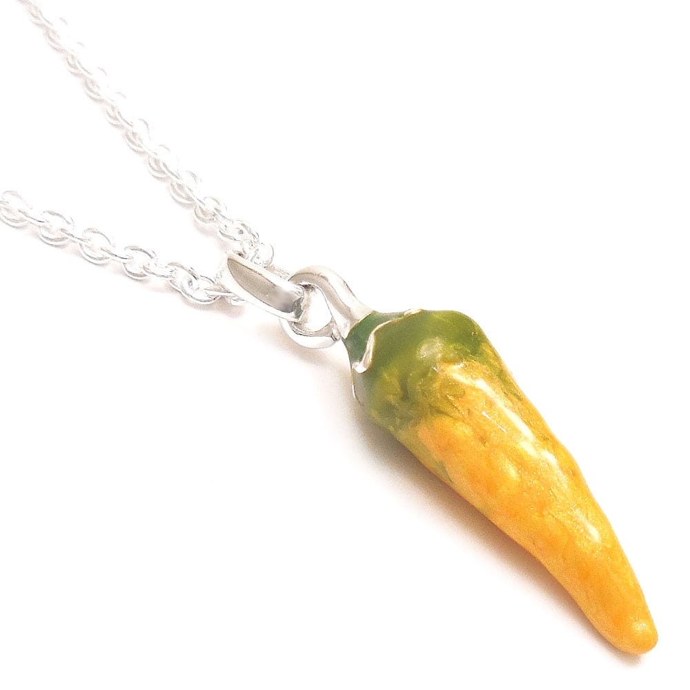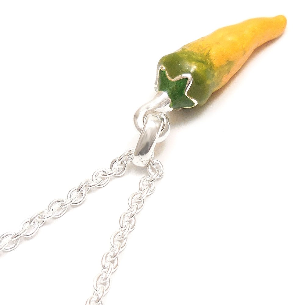 イタリア:サツルノの鮮やかな黄色い唐辛子をモチーフにした銀製チャームを使ったペンダントネックレス。