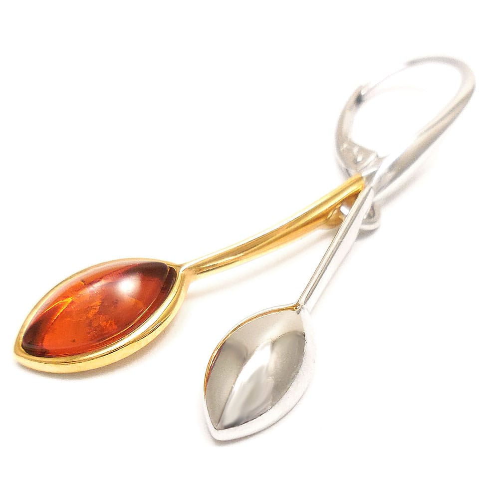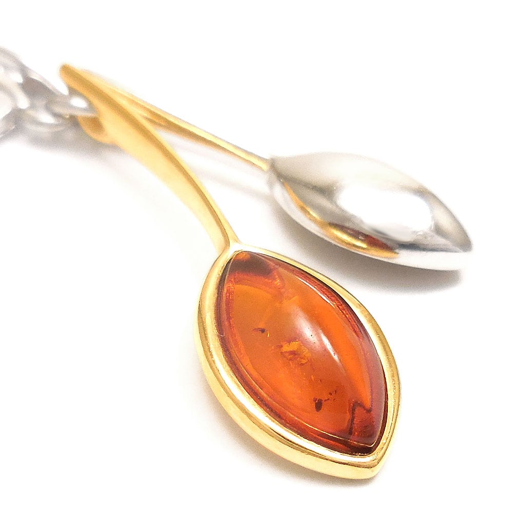だ円の両端を尖らせたマーキス形の琥珀と、もう一方は同じ形のチャーム。葉っぱのようにも見えて、ゆらゆらと可愛く揺れつつも、しっとりと落ち着いた優しいアクセントで耳元を飾ってくれます。