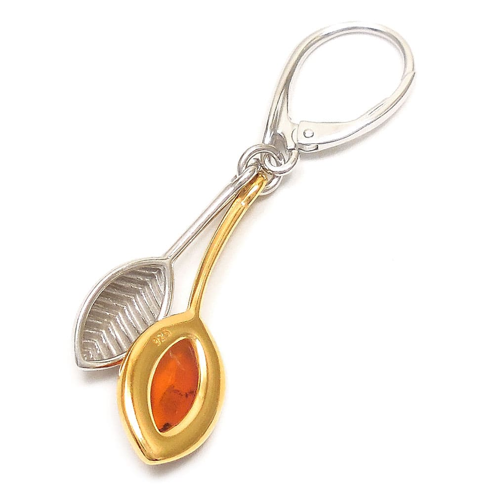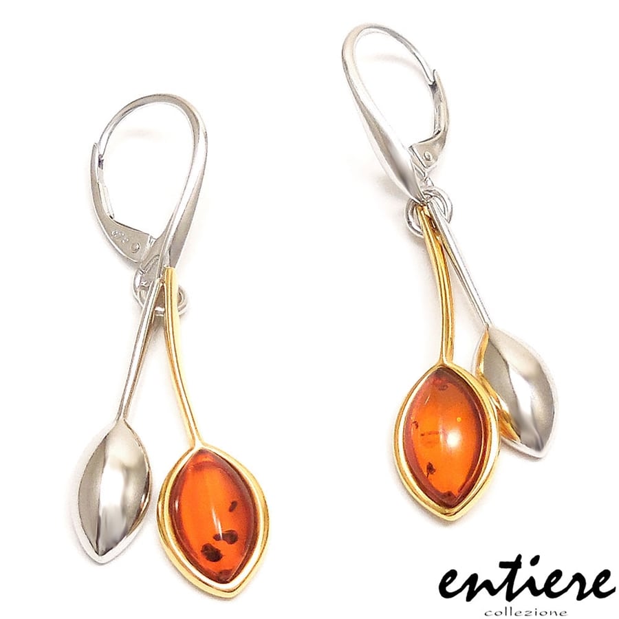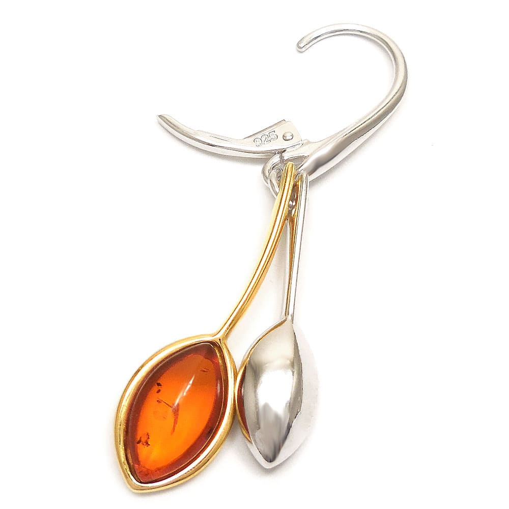 琥珀の揺れる、バイカラーフック式シルバーピアス。