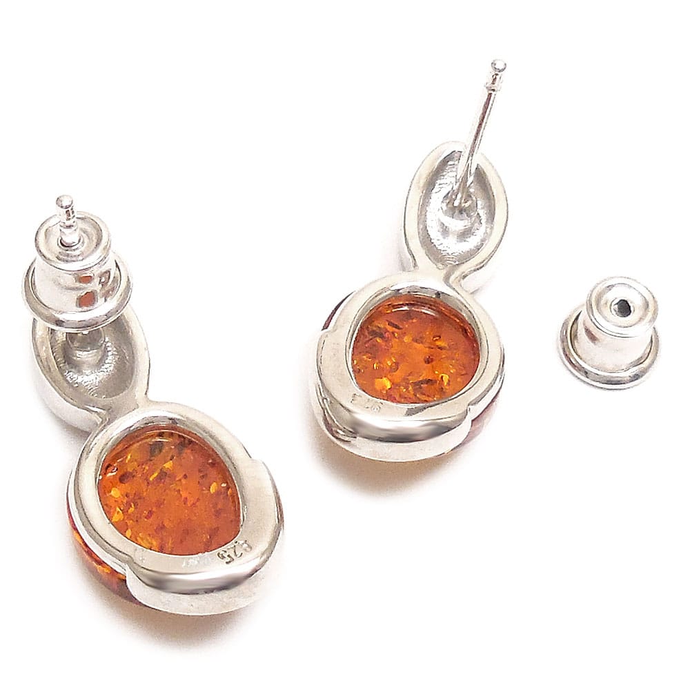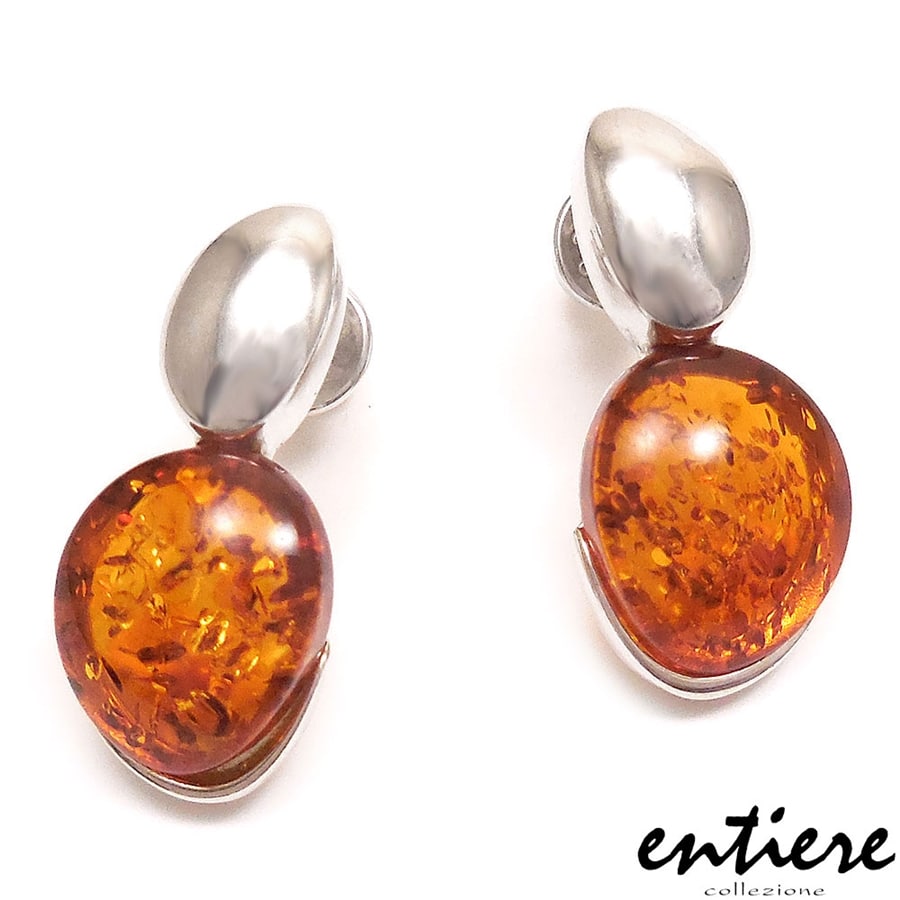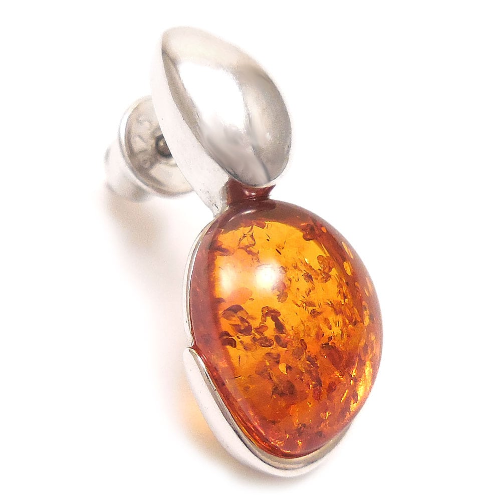 琥珀を使った優しい雰囲気あふれるスタッド式シルバーピアス。