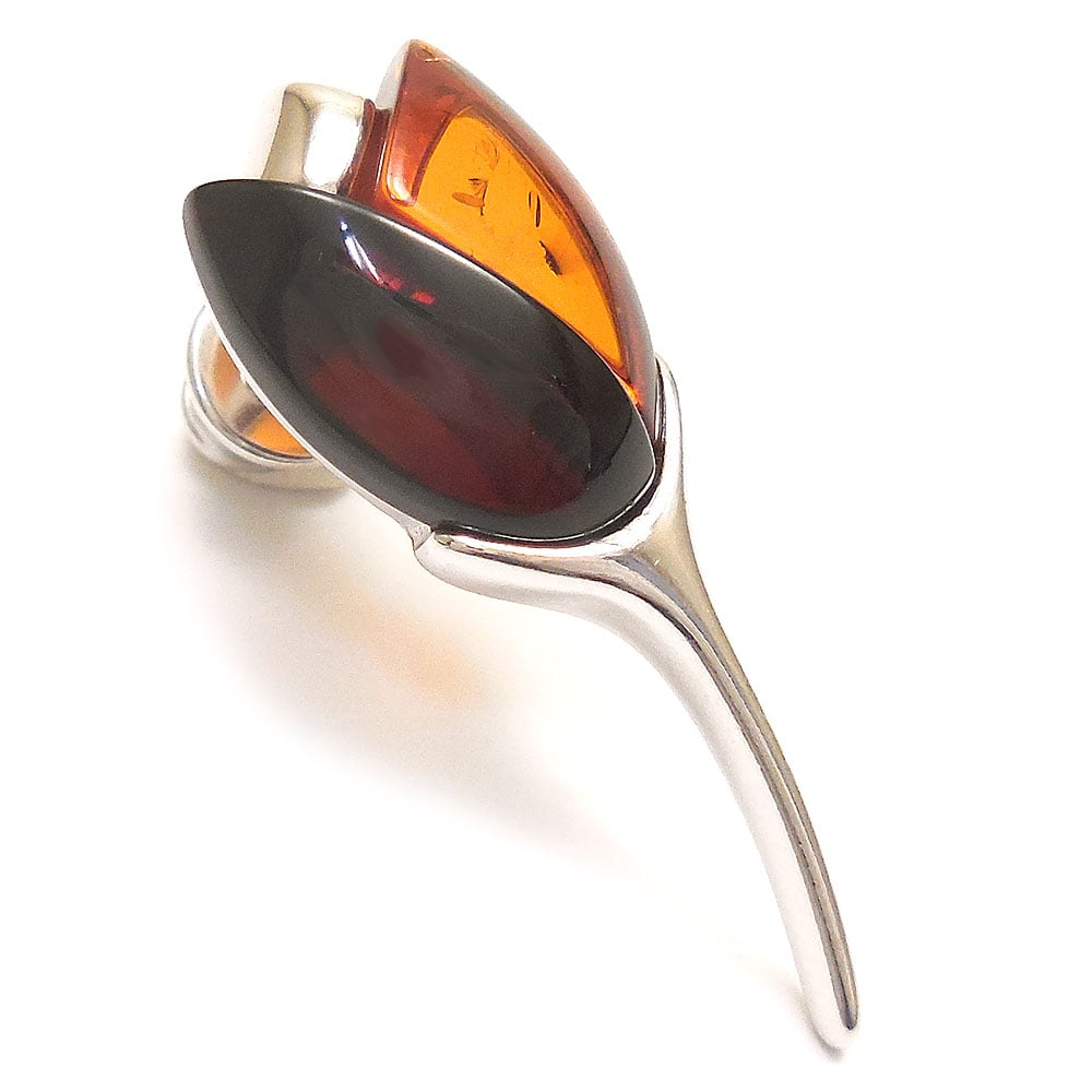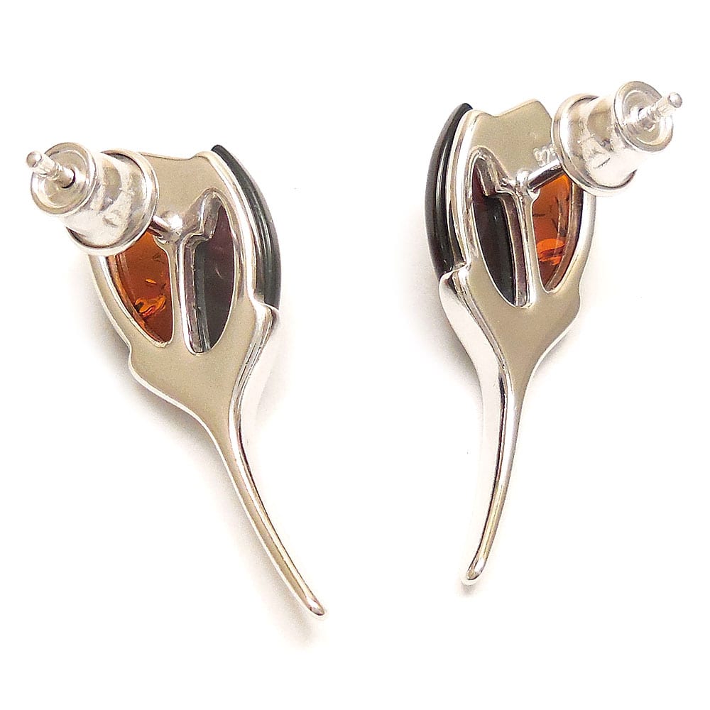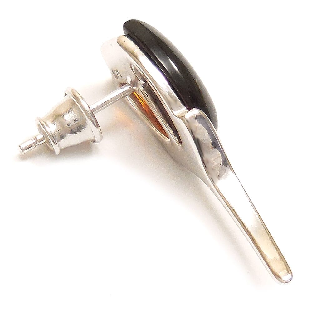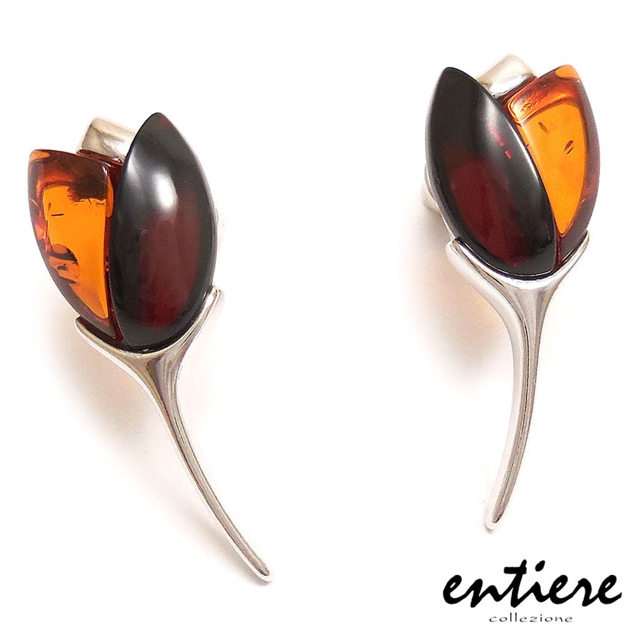 色味の違う琥珀が織りなす、可愛らしくもあり、しっとりと落ち着いたデザイン。シックな色合いで煌びやかなイメージではありませんが、ちゃんと耳元をアピール。