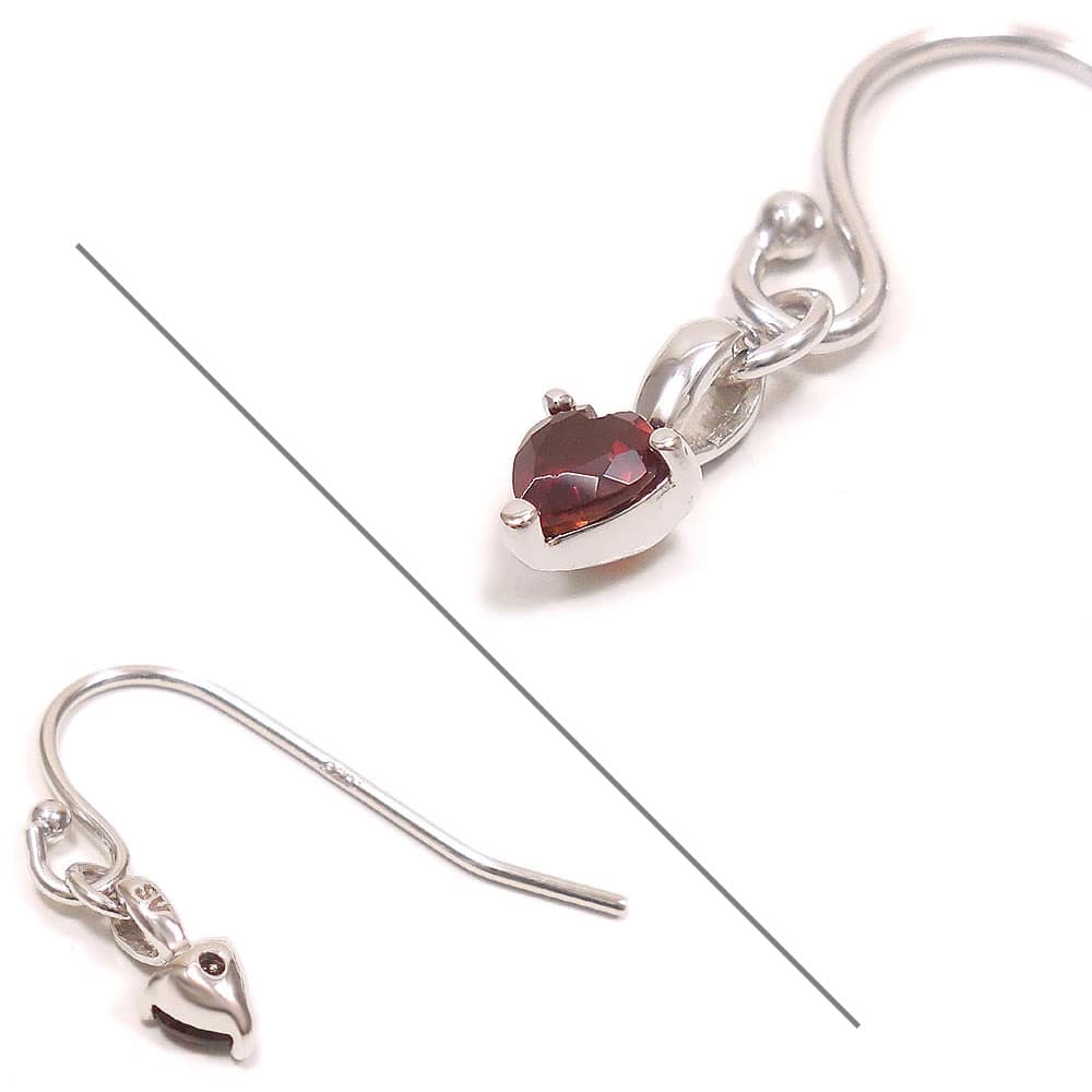 写真では少し分かりづらいですが、小さなハートシェイプにカットされた、1月の誕生石:ガーネットのピアスです。